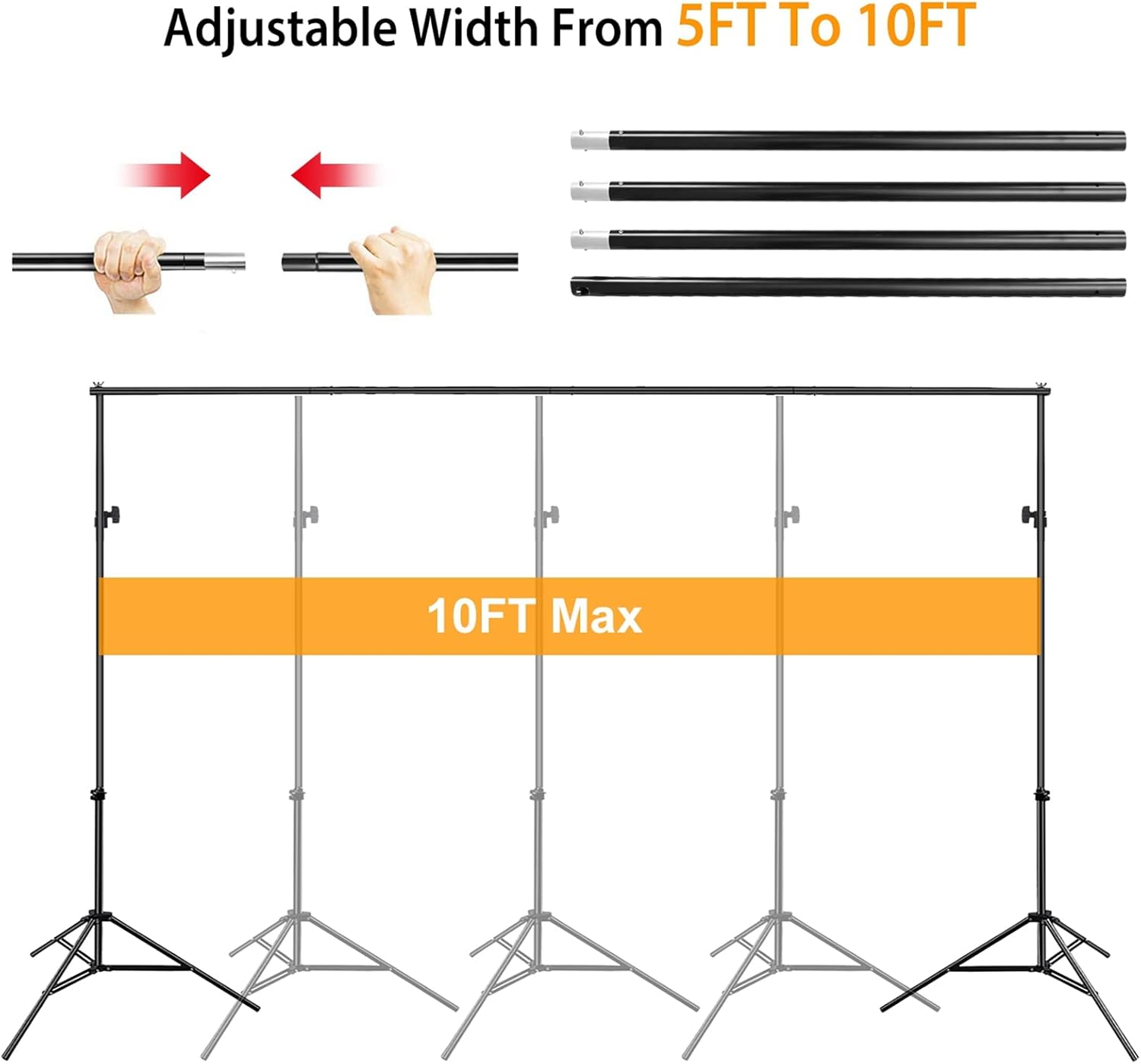 - 📸 **[Adjustable & Versatile Backdrop Stand]** – This photo backdrop stand features an adjustable width (5ft to 10ft) and height (2.5ft to 6.5ft), making it perfect for photo studios, parties, weddings, professional photography, video recording, and green screen setups.