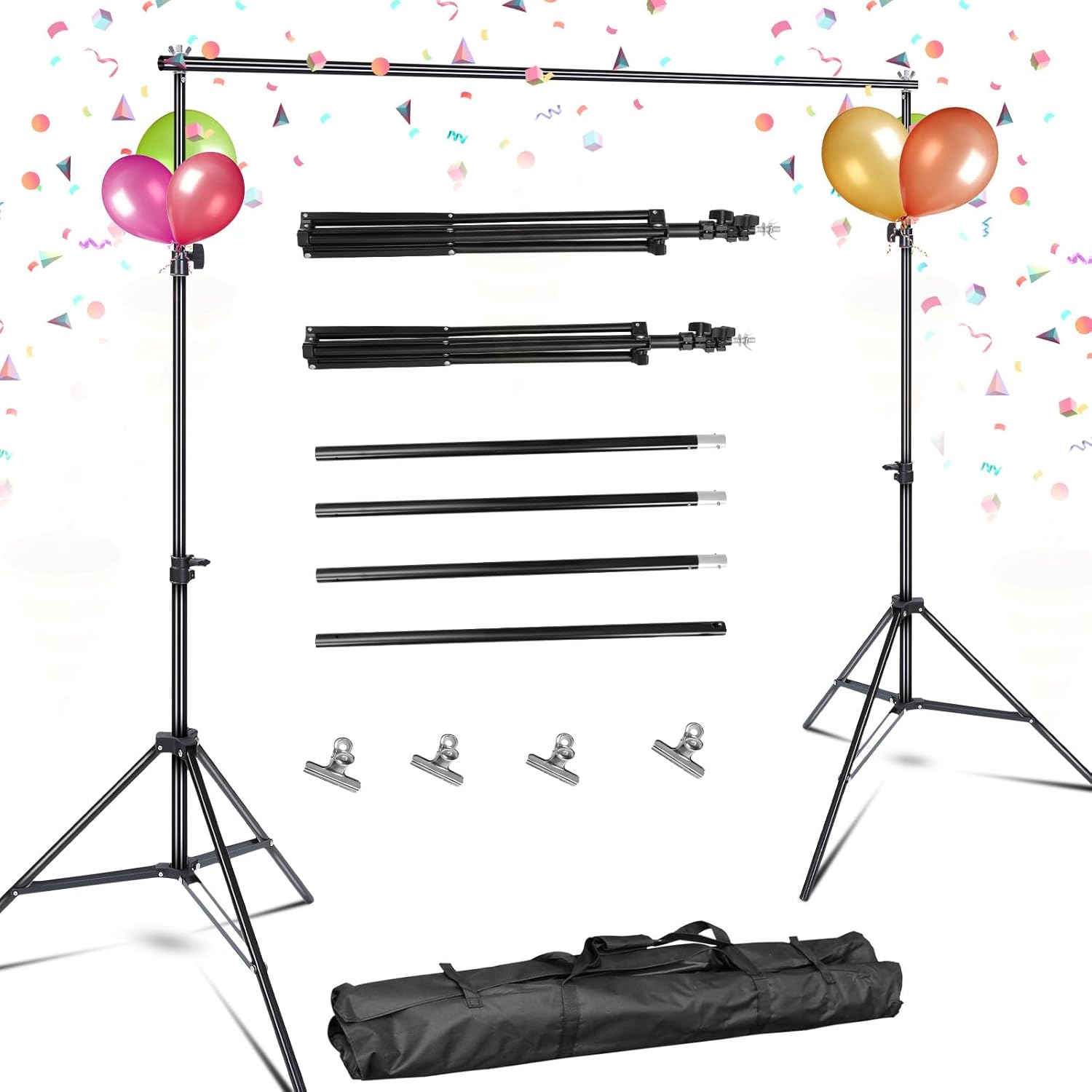 - 🔗 **[Includes 4 Strong Clamps]** – This backdrop support system includes four sturdy clamps to securely hold muslin, canvas, paper, or other backdrops in place, preventing wrinkles and movement. Perfect for photo shoots, video backgrounds, live streaming, and more.
