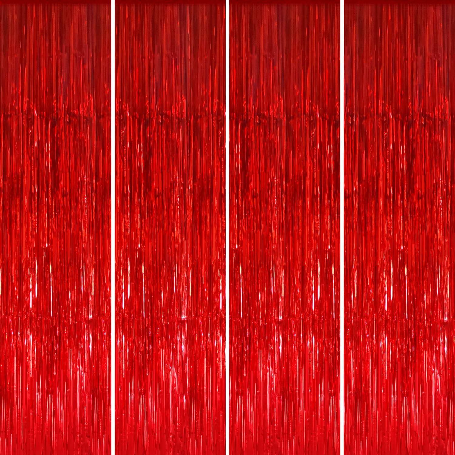 - Package Includes:4 pack red foil fringe curtains,3.2 ft x 8.2 ft each,suitable for hanging on a door or coverage a wall fully
