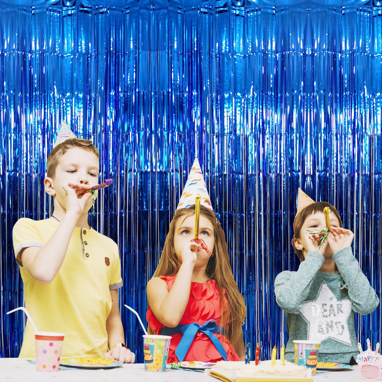 - Package Includes:4 pack navy blue foil fringe curtain,3.2 ft x9.8 ft each,suitable for hanging on a door or coverage a wall fully