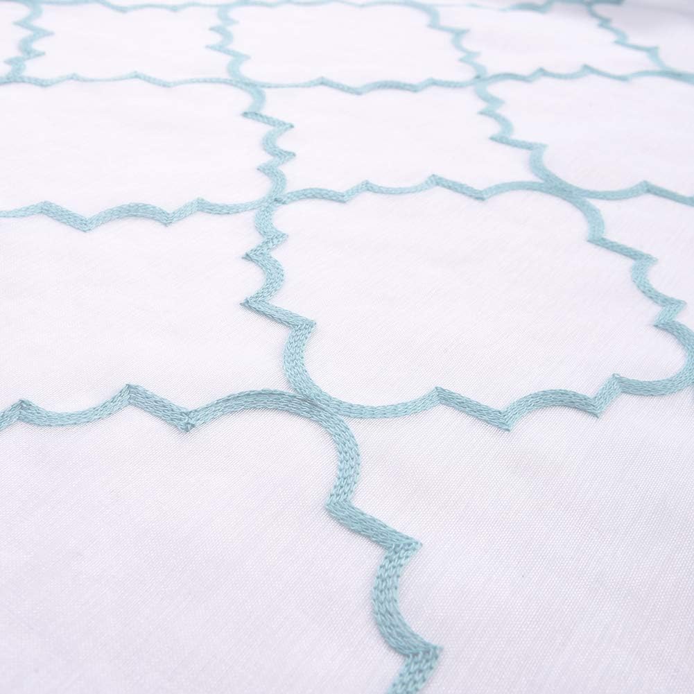 Sheer Curtains Blue 45 Inches Embroidered Moroccan Design, Rod Pocket Voile Drapes for Living room, Bedroom, Window Treatments Semi Curtain Panels for Yard, Patio, Villa, Parlor, Set of 2, 52"x 45".