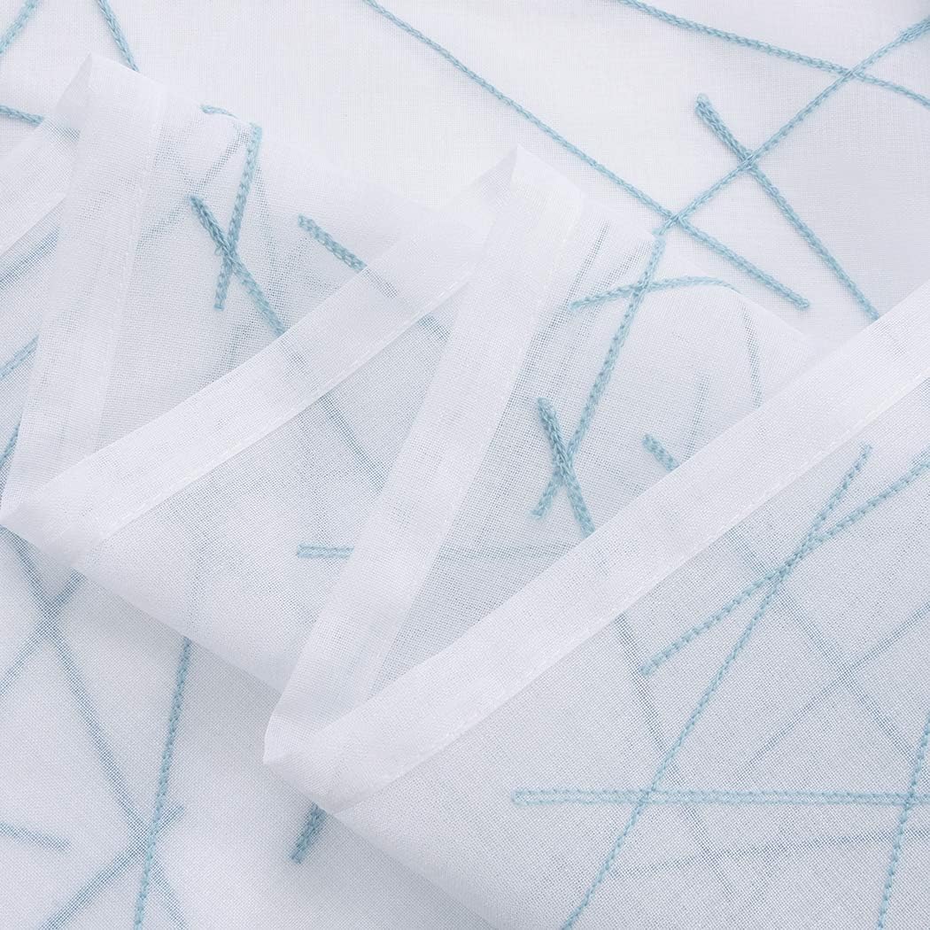 MYSTIC-HOME Sheer Blue Curtains 95 Inches Embroidered Branch Patterned Semi Window Treatments Rod Pocket Voile Curtain Panels for Living Room, Bedroom, Yard, Patio, Villa, Parlor, Set of 2, 52"x95".