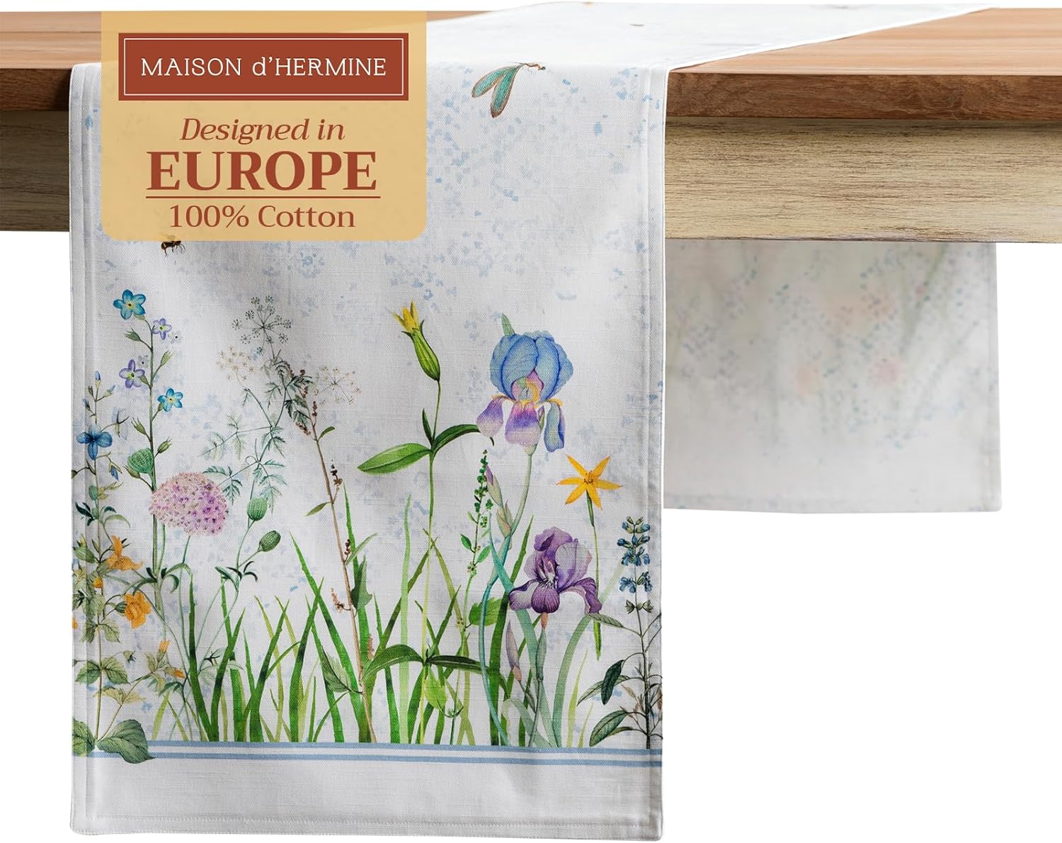 Maison d' Hermine Table Runner 100% Cotton Double Layer Table Runners 72 inches Long Decorative for Home Kitchen Dining Party Wedding Bridal Shower Spring Summer (Fleurs De Mai, 14.50" x 72")