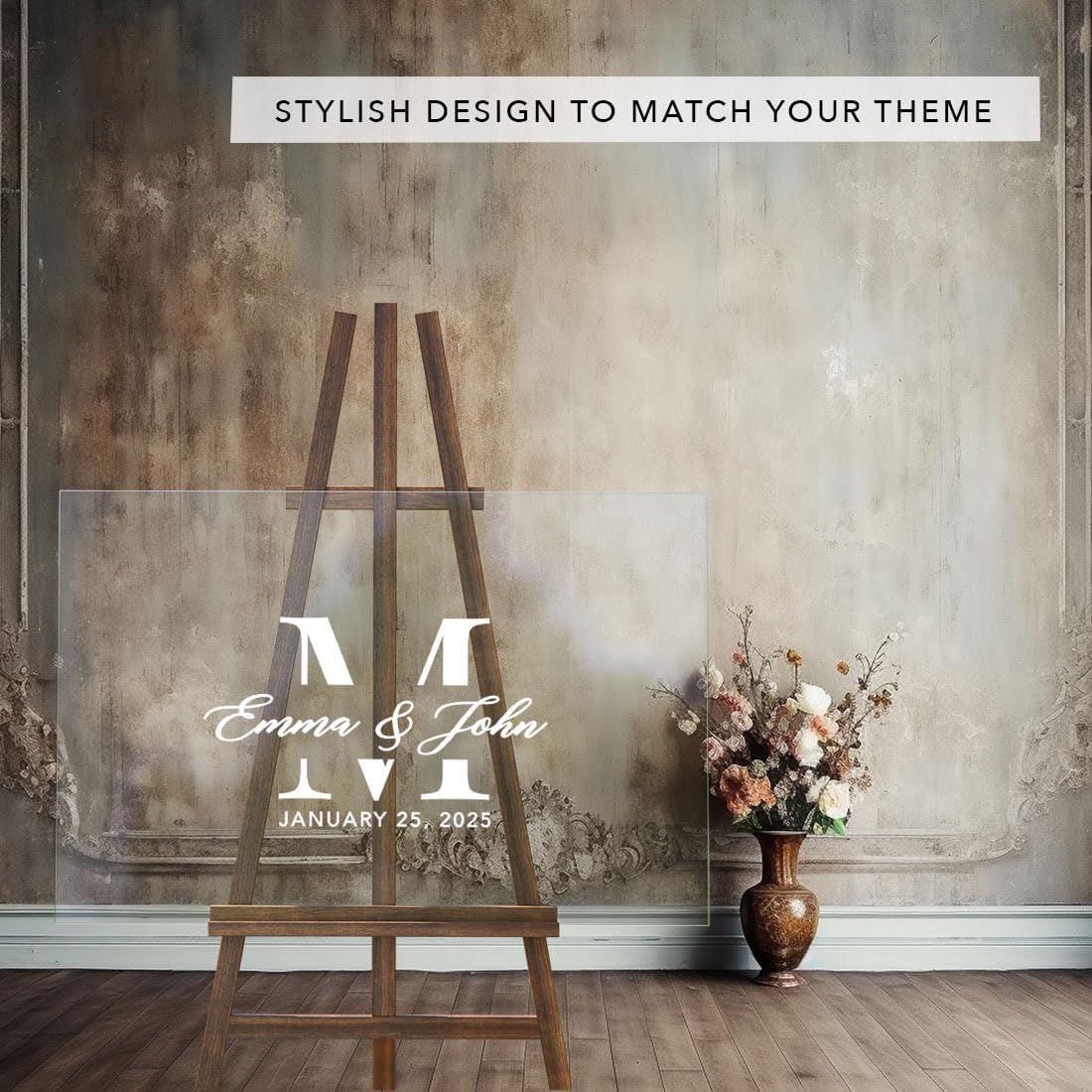 Andaz Press Custom Large Wedding Acrylic Sign, 16 X 24 Inches, Minimalist Modern Monogram, Personalized Sign, Welcome Sign For Modern Wedding Theme Wedding Signs For Ceremony And Reception