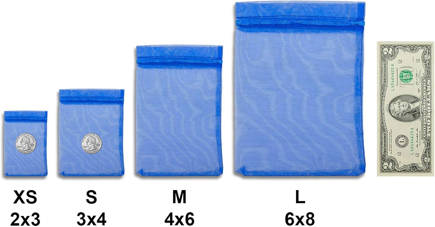 TheDisplayGuys 48-Pack 2" x 2-3/4" Royal Blue Sheer Organza Gift Bags with Drawstring, Goodie Bags for Jewelry, Candy Bags, Treat Bags, Wedding Favors Small Mesh Bags