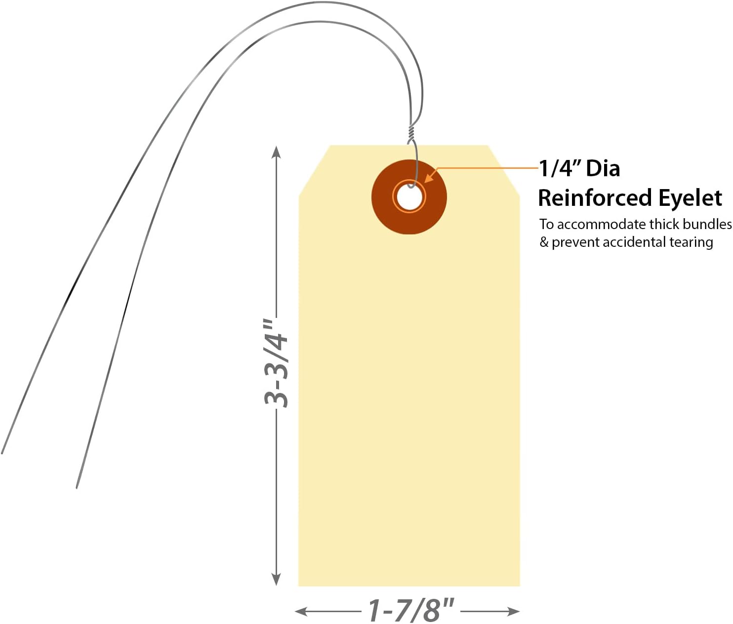 - TEAR RESISTANT: Tags include a reinforcing fiber patch for durability and stiffness. Eyelet diameter is 1/4 inch.