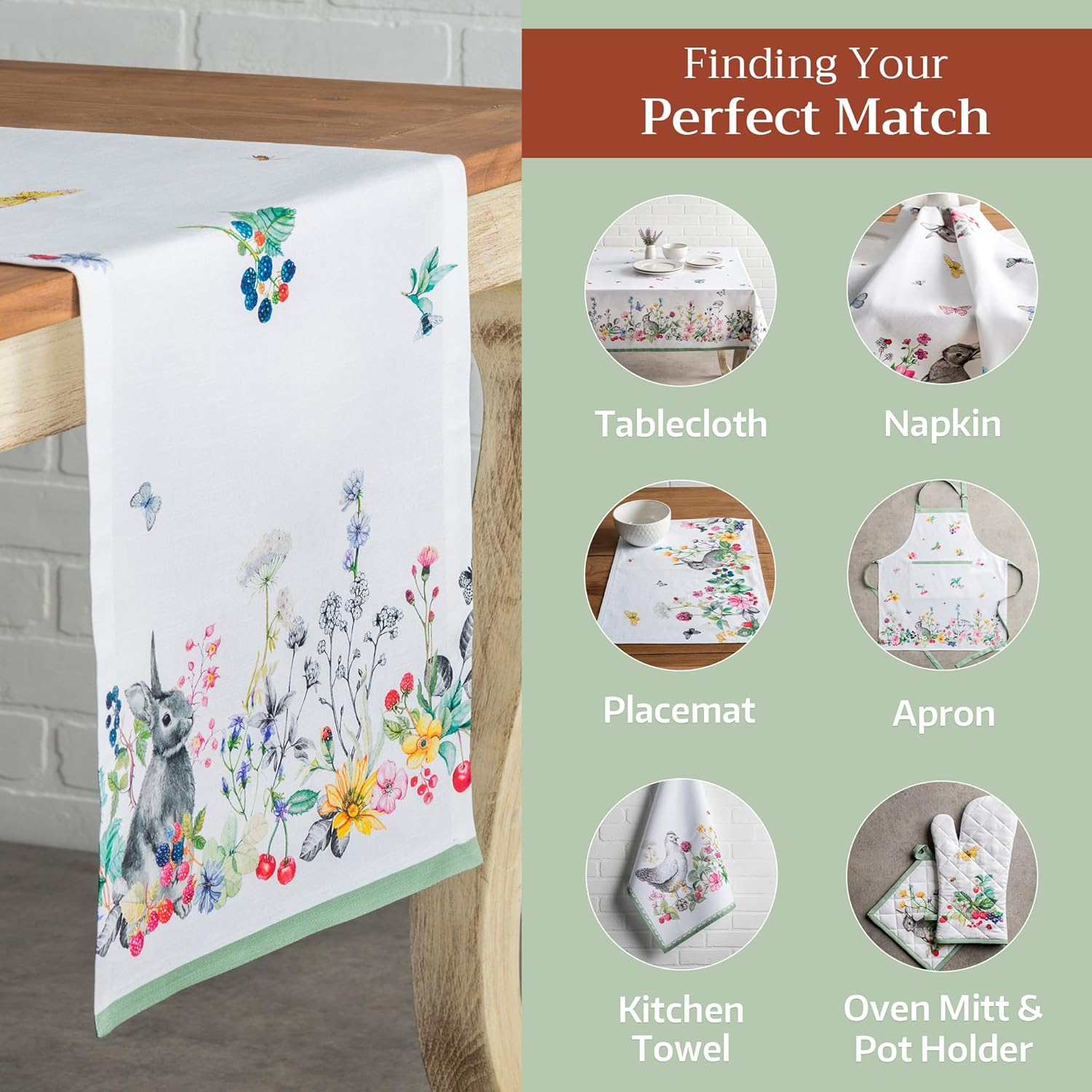 Maison d' Hermine Table Runner 100% Cotton Single Layer Table Runners 108 inches Long Decorative for Kitchen Dining Party Baby Shower Wedding Bridal Shower Spring Summer (Printemps, 14.50" x 108")