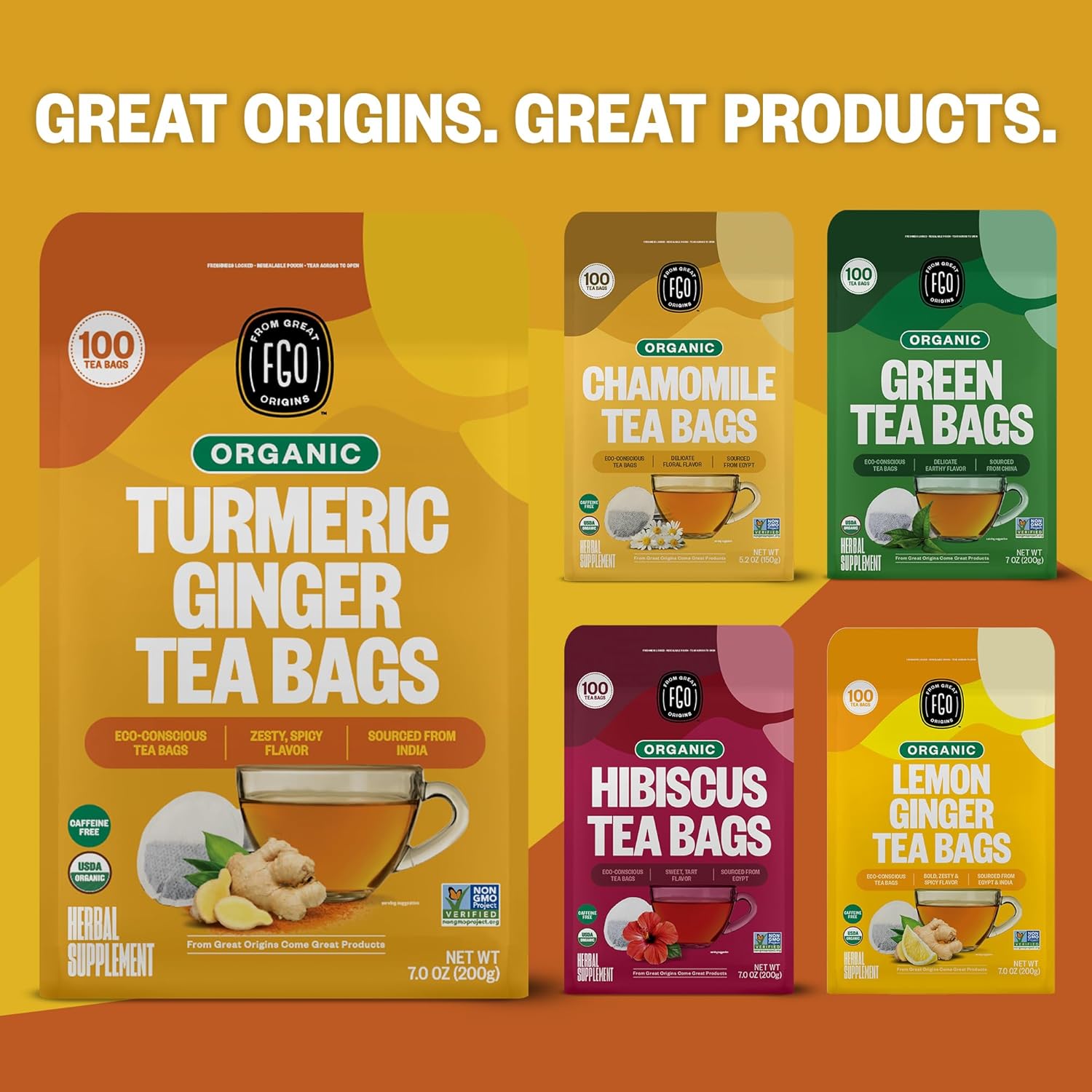 FGO Organic Turmeric Ginger Tea, Eco-Conscious Tea Bags, 100 Count, Packaging May Vary (Pack of 1)