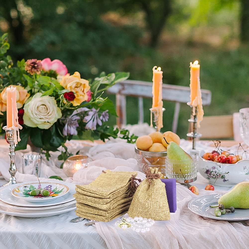 LYSXP 50PCS Burlap Bags with Drawstring,3x4 Inch Drawstring Gift Bag Jewelry Pouches for Wedding Party Favors, DIY Craft Christmas Presents
