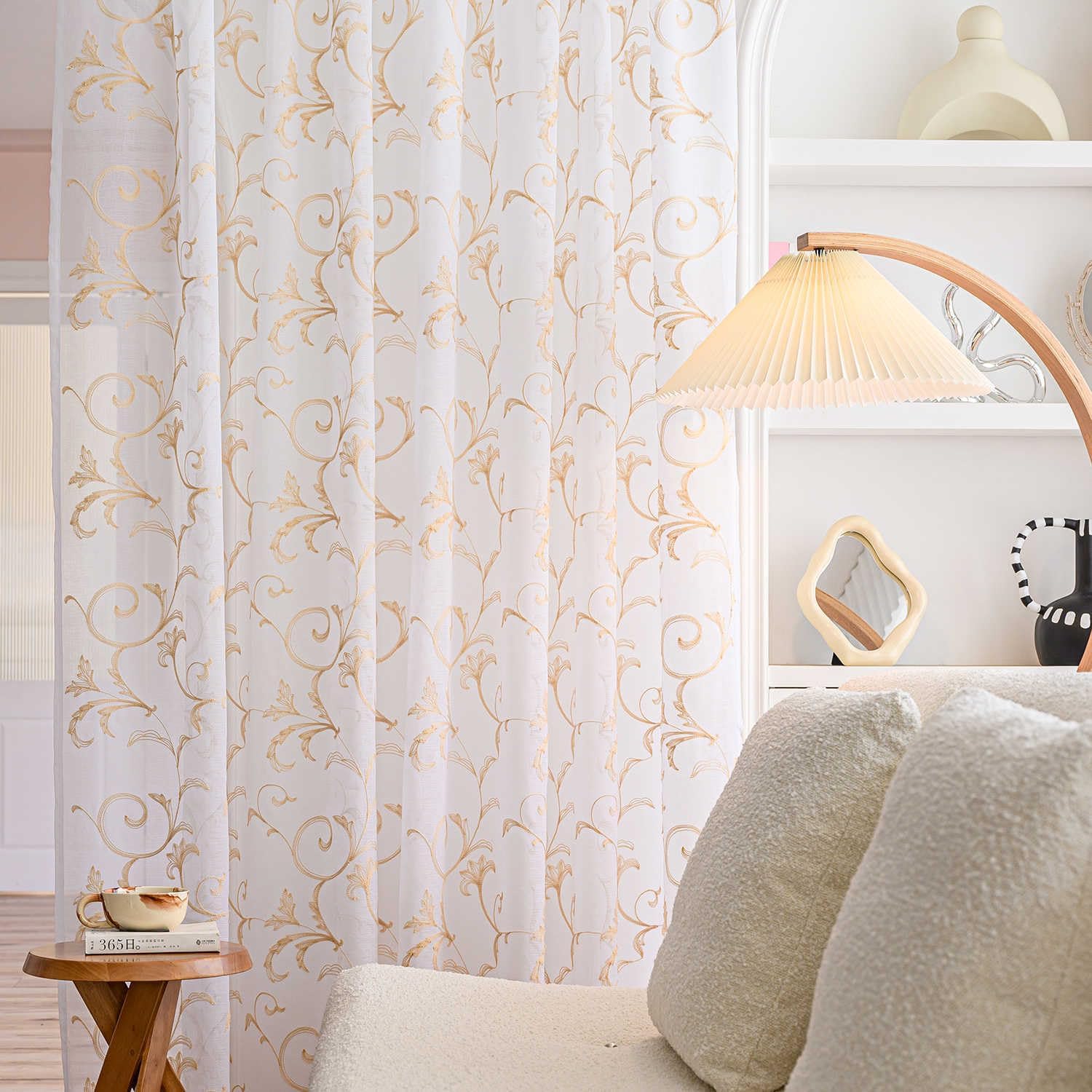 - ☀EMBROIDERY SHEER CURTAINS ARE EASY TO CARE. Machine wash cold, gentle cycle, tumble dry low, light iron as needed.