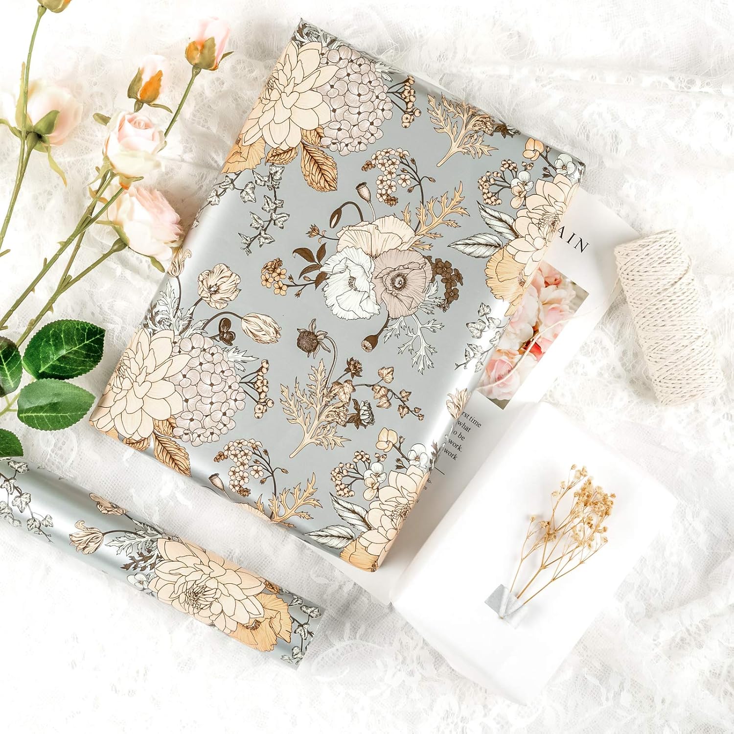 - ClASSIC PRINT: Beautiful vintage floral printed on silver pearlized paper.The kind of flower design will make your gift noble.We are sure when you receive it, you will compliment on how pretty they are!