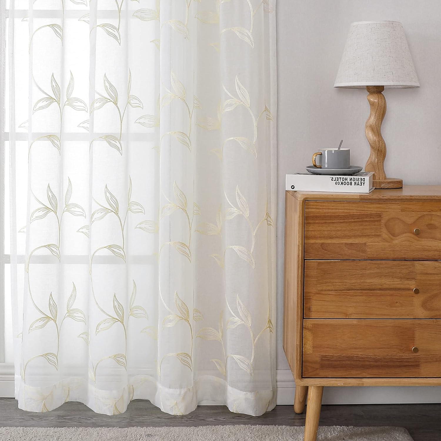 - Elegant embroidered design: window sheer curtains design cream leaves embroidered pattern, add style and elegance to living space, perfect for Bedroom, living room, kids room or any window.