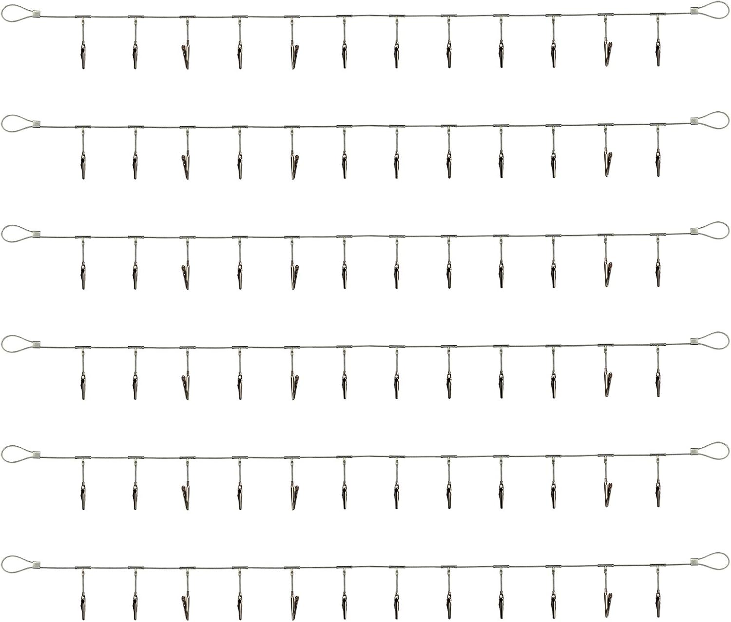 6 Pack 5 ft Steel Wall Hanging Photo Display Cable Wire Rod String with 12PCS Clips, Picture Holders for Kids Crafts, Notes