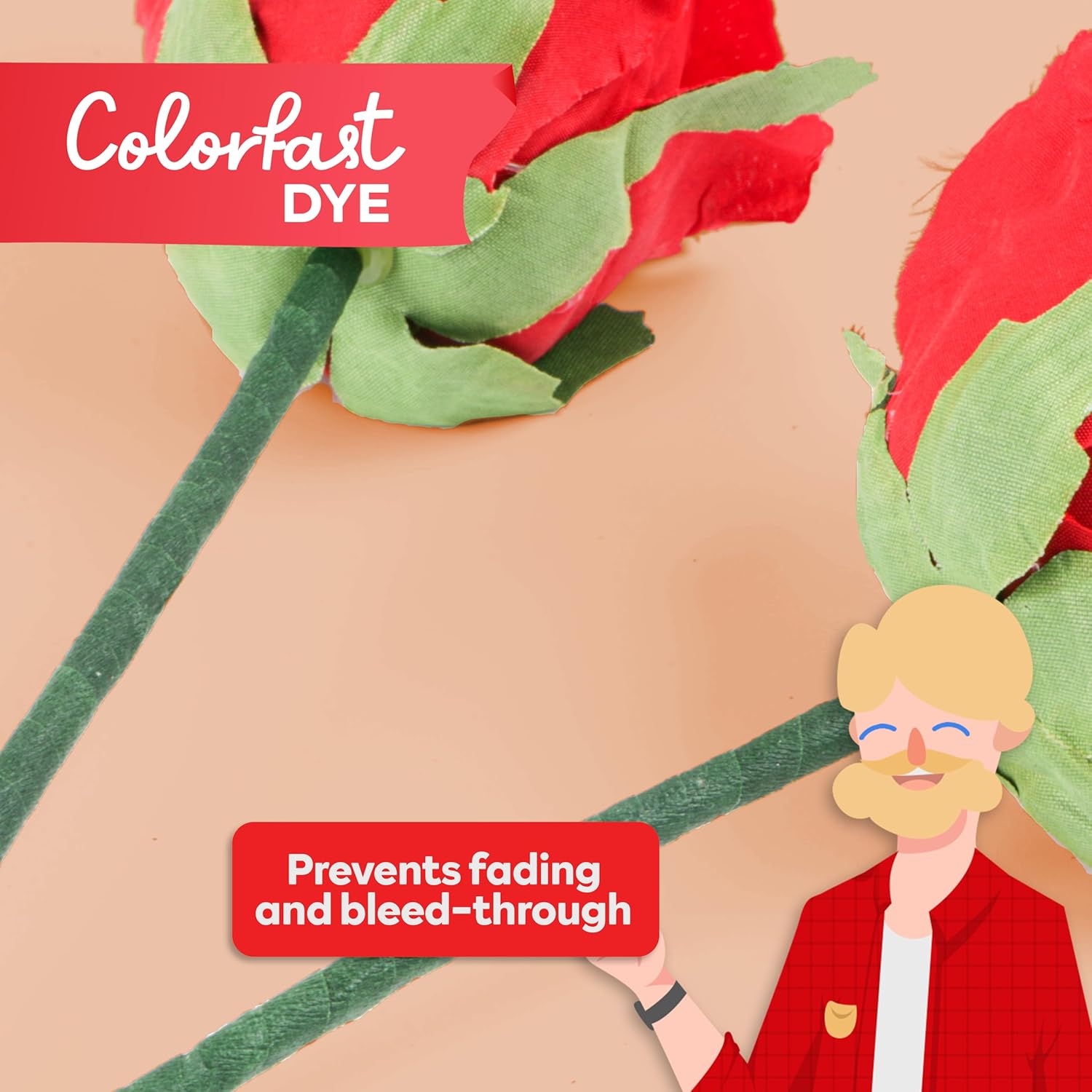 - This green tape for flowers sports a COLORFAST dye that prevents fading and bleed-through. Blends invisibly on green floral stems, allowing for seamless flower arrangements. Can also be used for DIY scrapbooking, giftwrapping, creating flower pens, crowns, and foam wreaths.