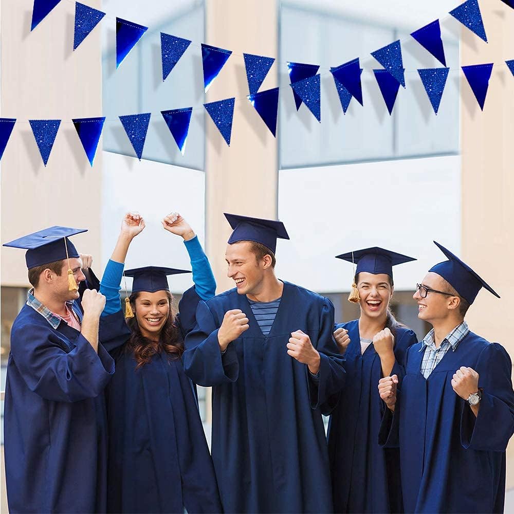 30 Ft Royal Blue Party Decorations Navy Blue Metallic Glitter Paper Triangle Banner Flag Garland Pennant Bunting for Graduation Birthday Wedding Bridal Shower Ahoy Achor Nautical Theme Party Supplies