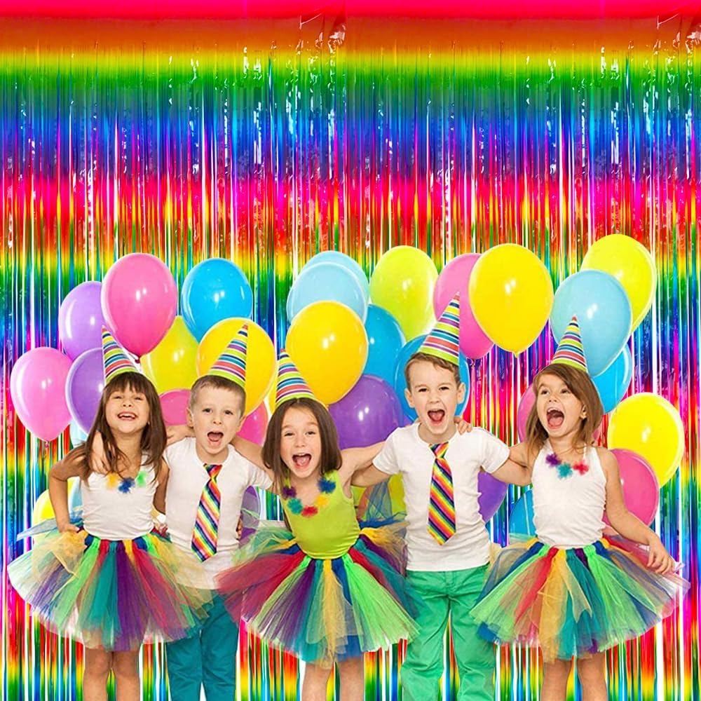 - Color: the colorful fringe curtain set is in dark rainbow; They are shiny and brightly under the light good decorations for your amazing parties.