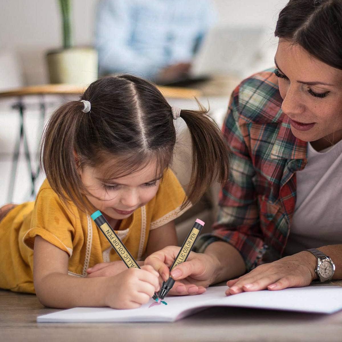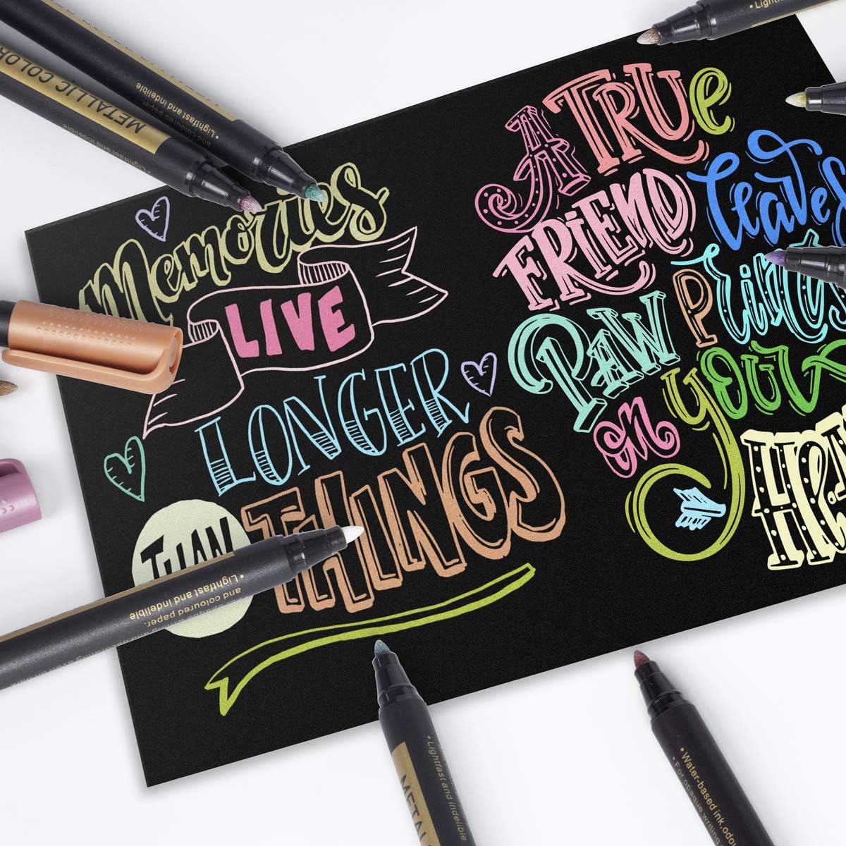 - ★Great Gift Idea - Metallic paint pens are made with water-based, opaque metallic ink. The ink is acid-free, environmentally friendly, and non-toxic. Best gift for children, teenager, art students, artist, scrapbook maker,scrapbook pens lover for Christmas, Birthday, Mother's Day, Easter Day, Valentine's Day, Thanks giving Day, New Year's gift