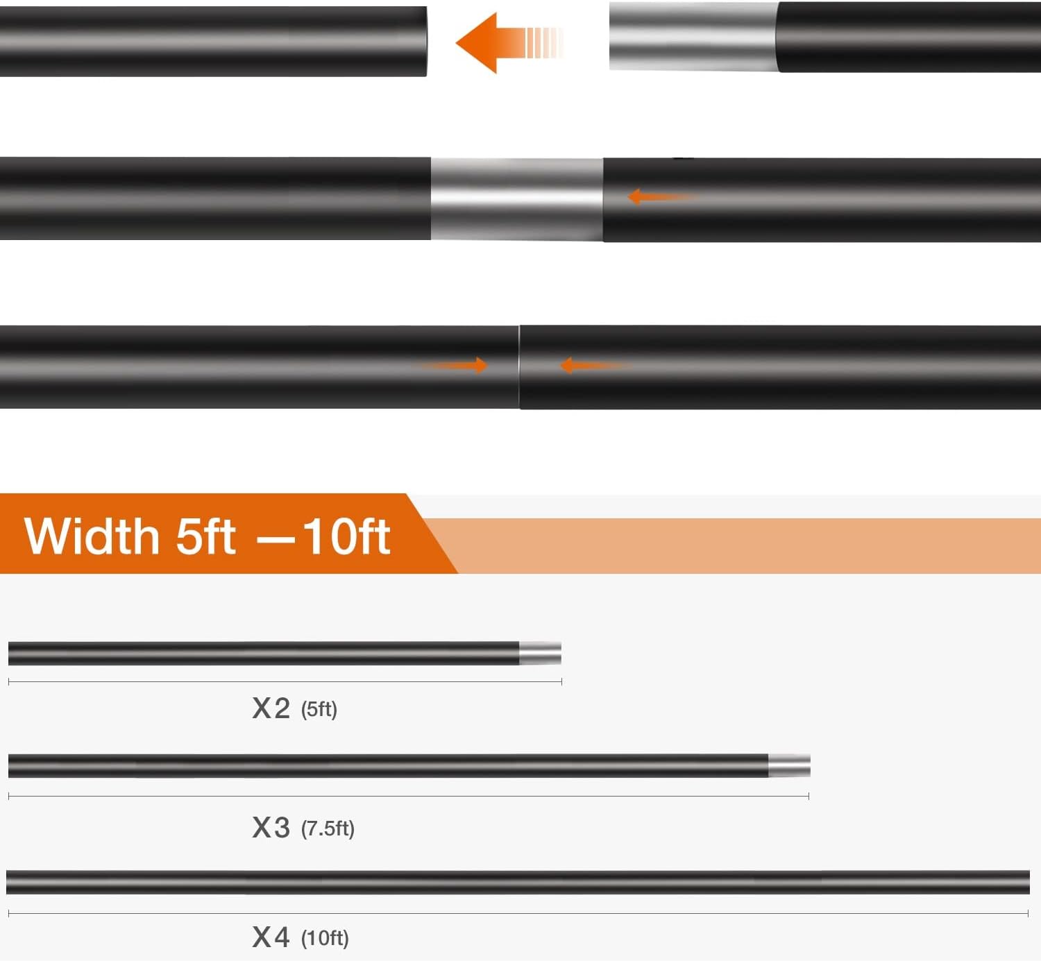 - 4 x CROSSBAR: Adjustable width (Min 5ft – Max 10ft), easy to connect, telescoping top crossbar, aluminum alloy support stand, professional lightweight pipes and support stands for professional photography, photo studio, family gathering, wedding, baby shower, party decoration, video shooting, live steaming like YouTube, TikTok, Facebook, Instagram, etc. Also this photo backdrop stand can be hung with green screen, canvas, muslin, cotton, paper and PVC background backdrop paper.