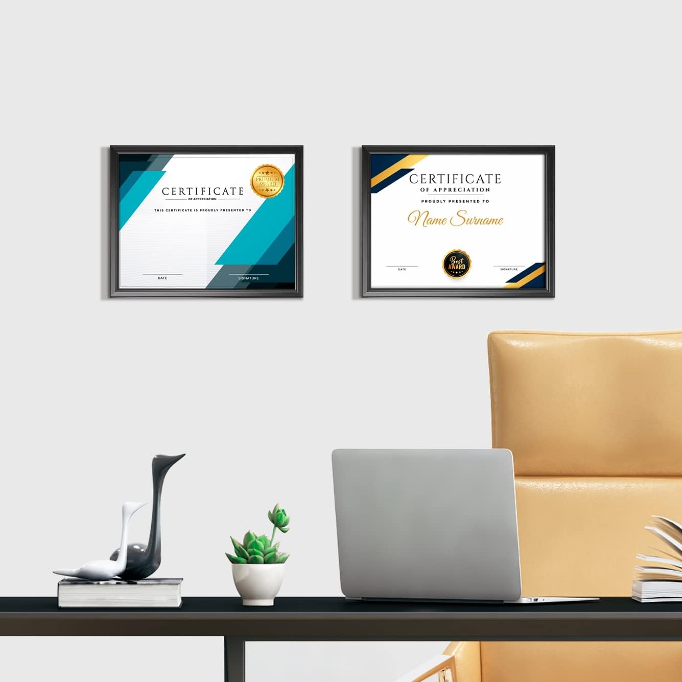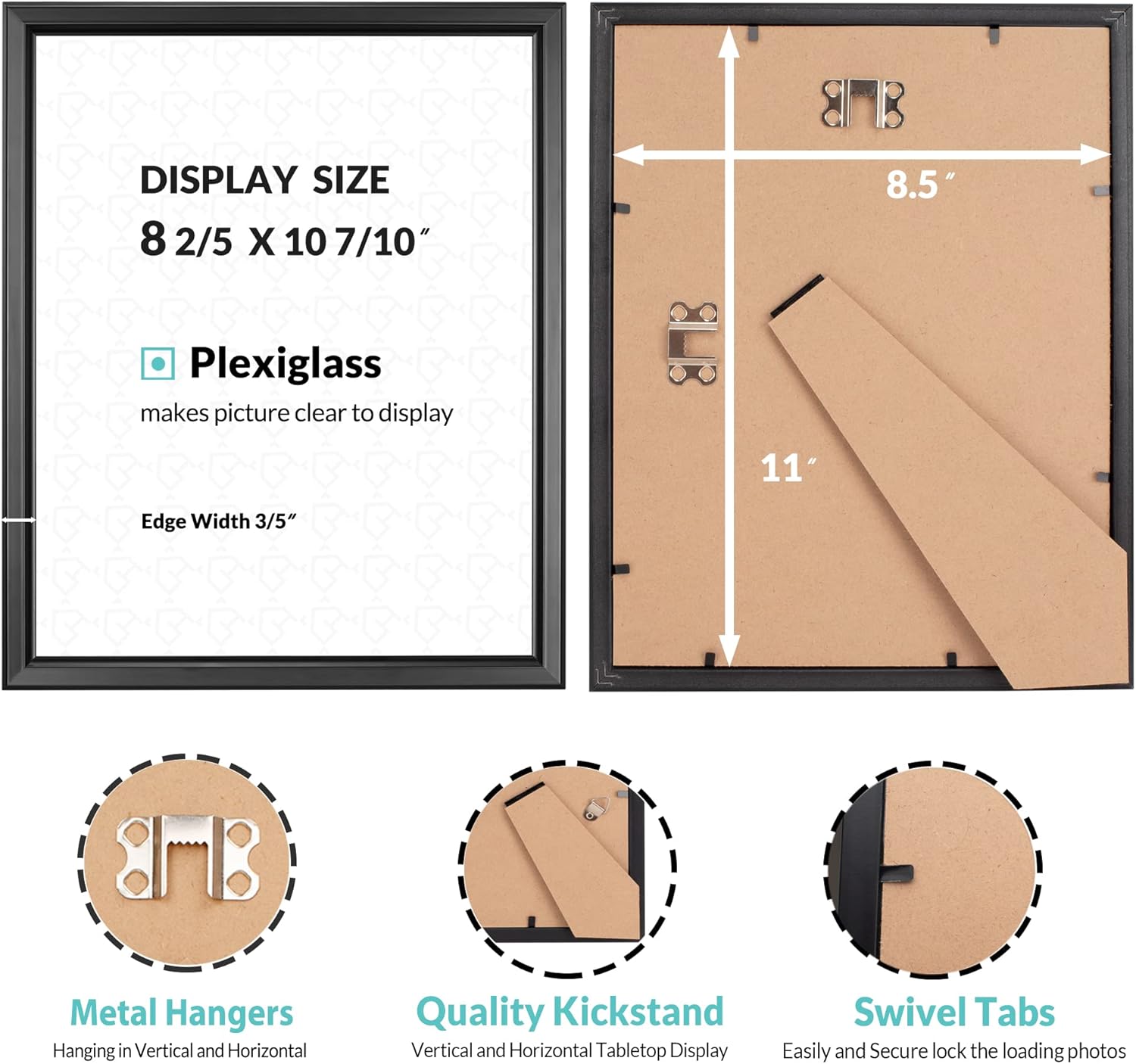 - PACKAGE INCLUDES - Set of 12 black frames, fits standard 8.5x11 inches pictures, photos, prints, with real glass to protect against dust and moisture. Tips: wall hooks or fasteners are not included in the package.