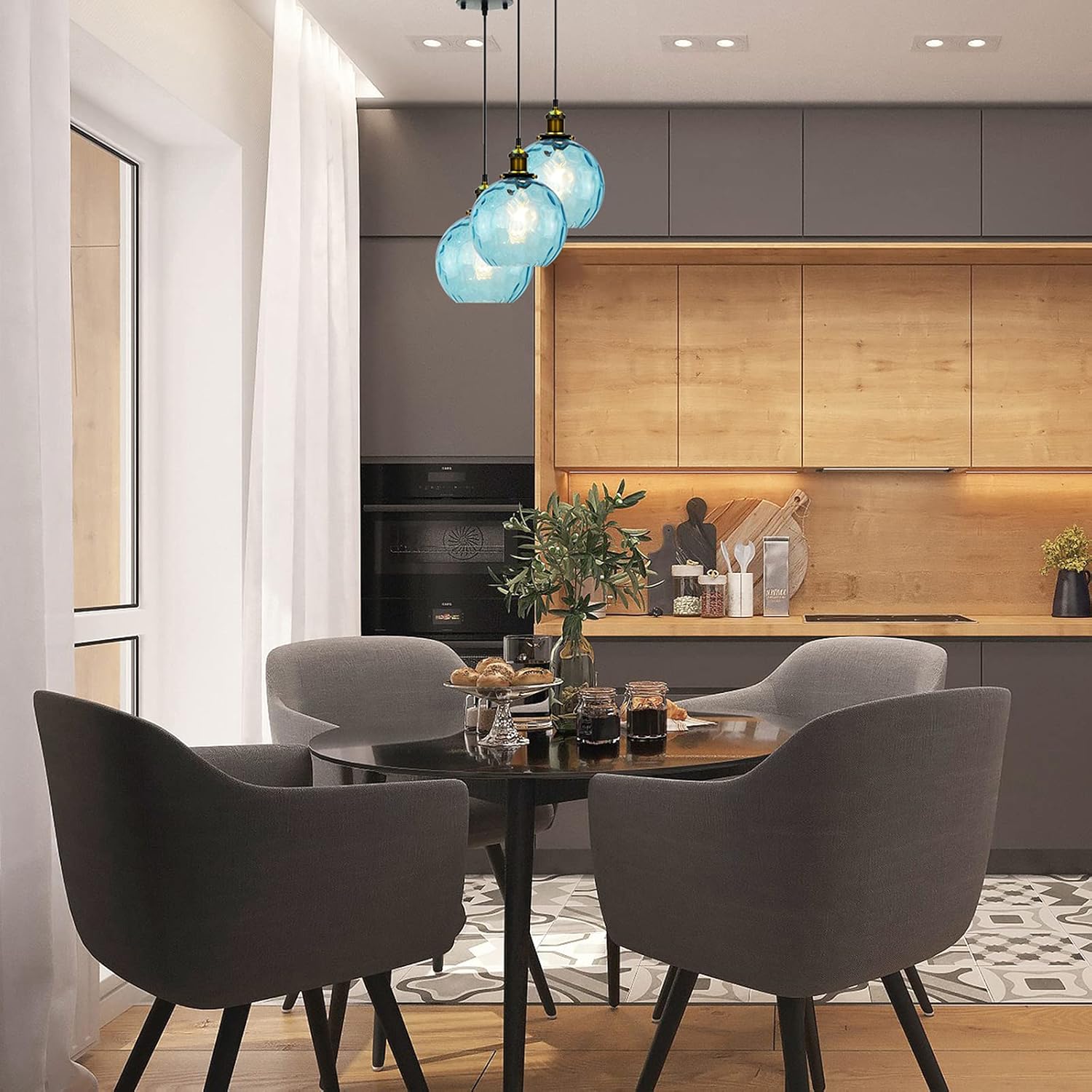 Pendant Light Shade Industrial Hanging Lights Fixtures Ceiling Outdoor Pendant Lighting for Kitchen Island Dining Room Unique Lamp in Kitchen Farmhouse Bedroom (Blue, 5.9 Inches)