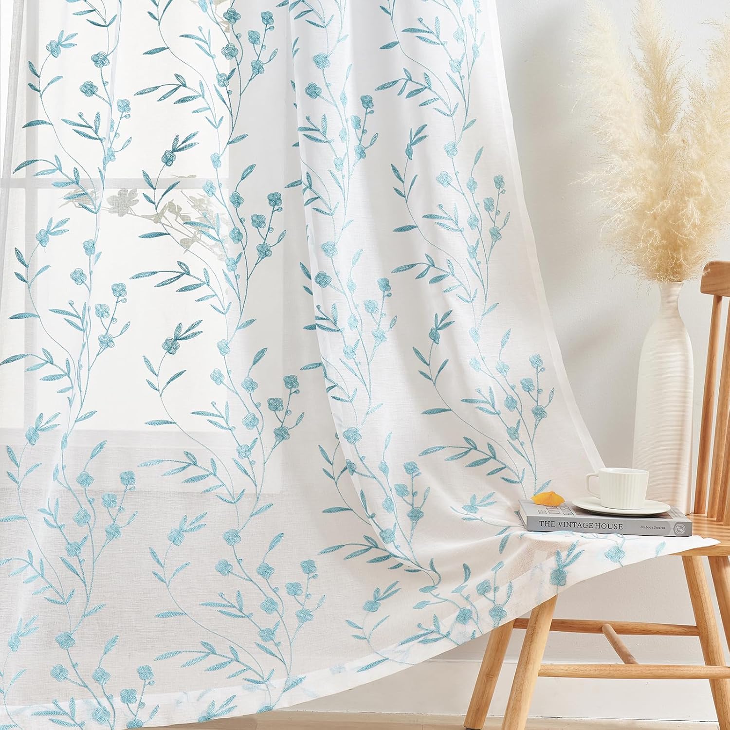 - ☀EMBROIDERY SHEER CURTAINS ARE EASY TO CARE. Machine wash cold, gentle cycle, tumble dry low, light iron as needed.