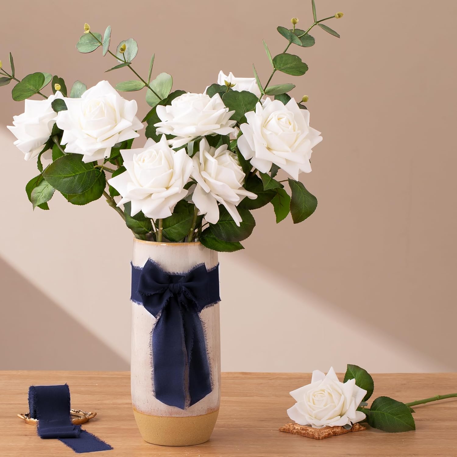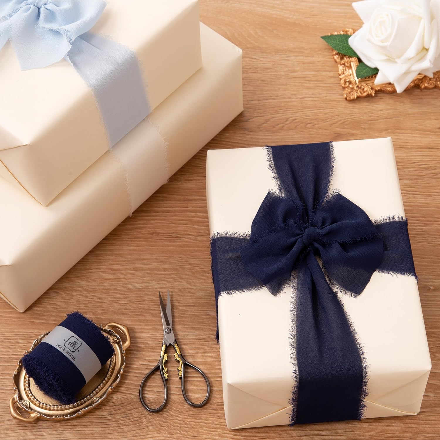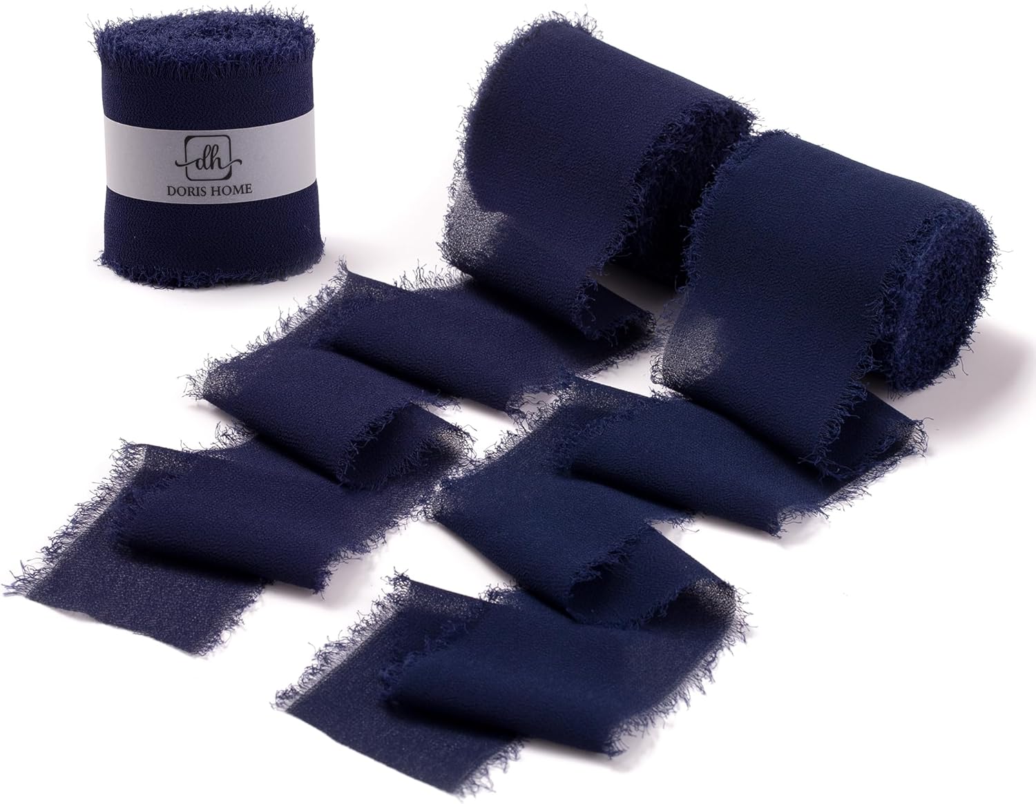 - 【Size and Color】Each roll of chiffon ribbon is 2 inches wide and 7 yards long, perfect for various creative uses such as making bows, decorating wreaths, and DIY crafts. This set includes 3 rolls dark navy blue ribbons. These vibrant frayed ribbons add a rustic charm to your creations, ideal for bouquet wrap or gift ribbon.
