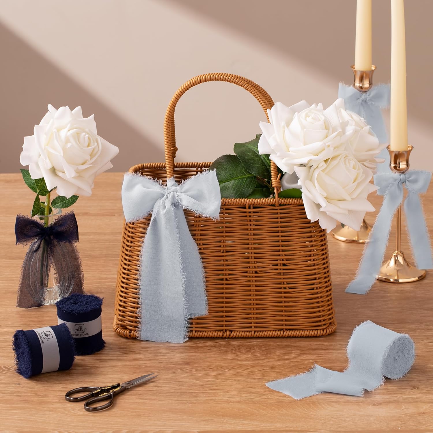 - 【Multiple Applications】This chiffon silk ribbon is great for gift wrapping, wedding decorations, wedding invitations, birthday parties, holiday celebrations, bridal showers, newborn photography props, wedding aisle backgrounds, boutonnieres, flower girl baskets, bouquet wrapping ribbons, Easter baskets, and even Christmas gift wrapping. Its elegant appearance makes it an ideal choice for bohemian or rustic DIY projects.