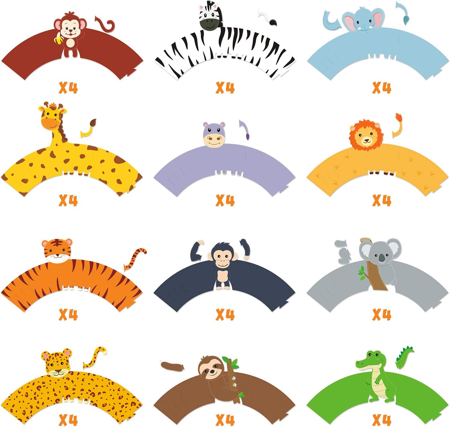 - 【COPYRIGHT RESERVED】Package contains 48pcs jungle safari animal cupcake wrappers. Jungle animals species include Hippo, Crocodile, Koala, Monkey, Orangutan, Elephant, Lion, Giraffe, Tiger, Zebra, Sloth and Leopard. They will surely be a hit of your jungle animal themed party.