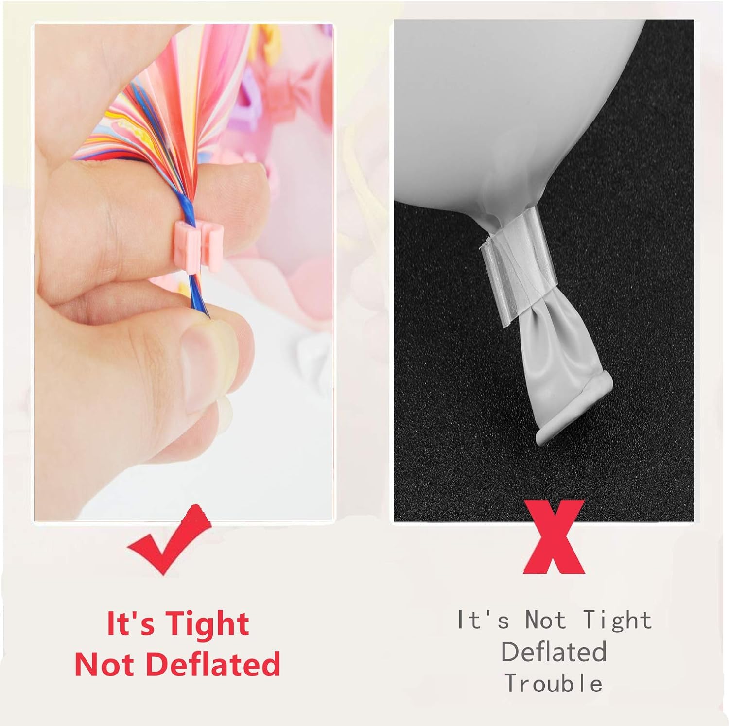 - Please be sure to twist the balloon before clipping. This Will Ensure That The Balloon Does Not Deflate. Suitable for 5 inch, 6inch,7 inch, 8 inch, 9inch, 10 inch, 12 inch balloon. Small But Durable, Convenient For Carrying Or Storage