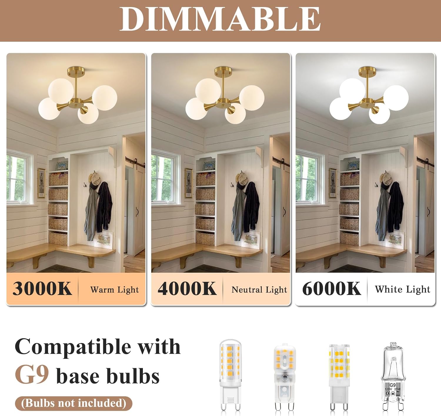 - ✽【Light Bulb Included】It come with four G9 led light bulb as a small gift. Length: 19.7” (50cm), height: 11.8” (30cm). Globe diameter: 5.9” (15cm), Canopy diameter: 4.7” (12cm). Light source: G9 light bulb, Voltage: 110-250V for worldwide. UL listed lamp socket and UL listed electric wire.