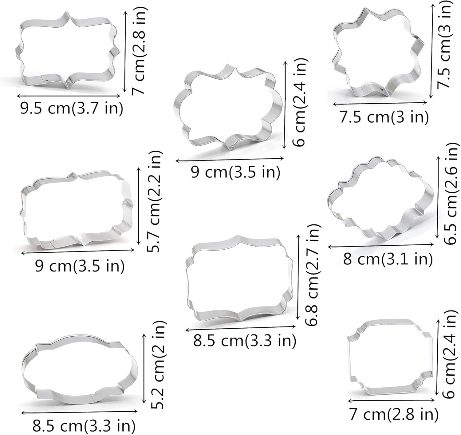 Fancy Plaque Cookie Cutters Set of 8 pcs, Stainless Steel Wedding Frames Shaped Fondant Cutter Molds Baking DIY