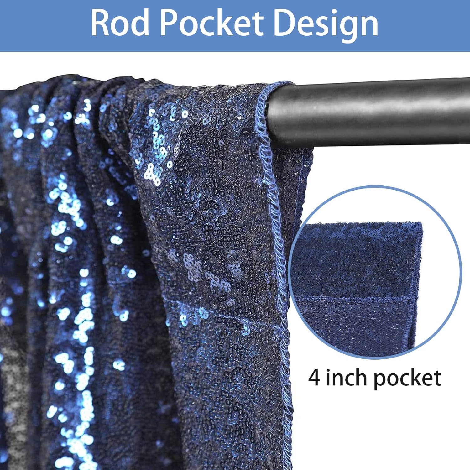 Hahuho Navy Sequin Backdrop Curtain, 4PCS 2FTx8FT Glitter Backdrop Curtain for Parties, Christmas, Wedding, Party Decoration(4 Panels, 2FT x 8FT, Navy
