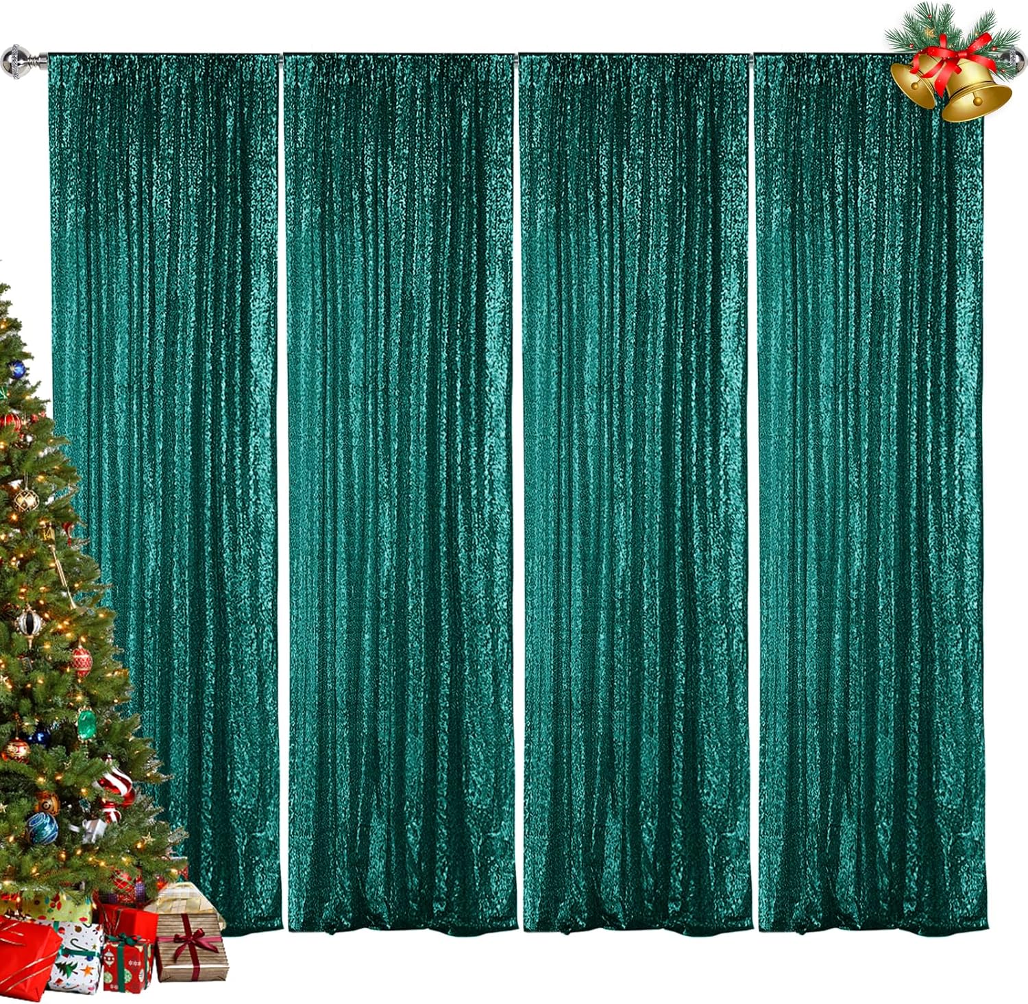 Hahuho Hunter Sequin Backdrop Curtain, 4PCS 2FTx8FT Glitter Backdrop Curtain for Parties, Christmas, Wedding, Party Decoration(4 Panels, 2FT x 8FT, Hunter