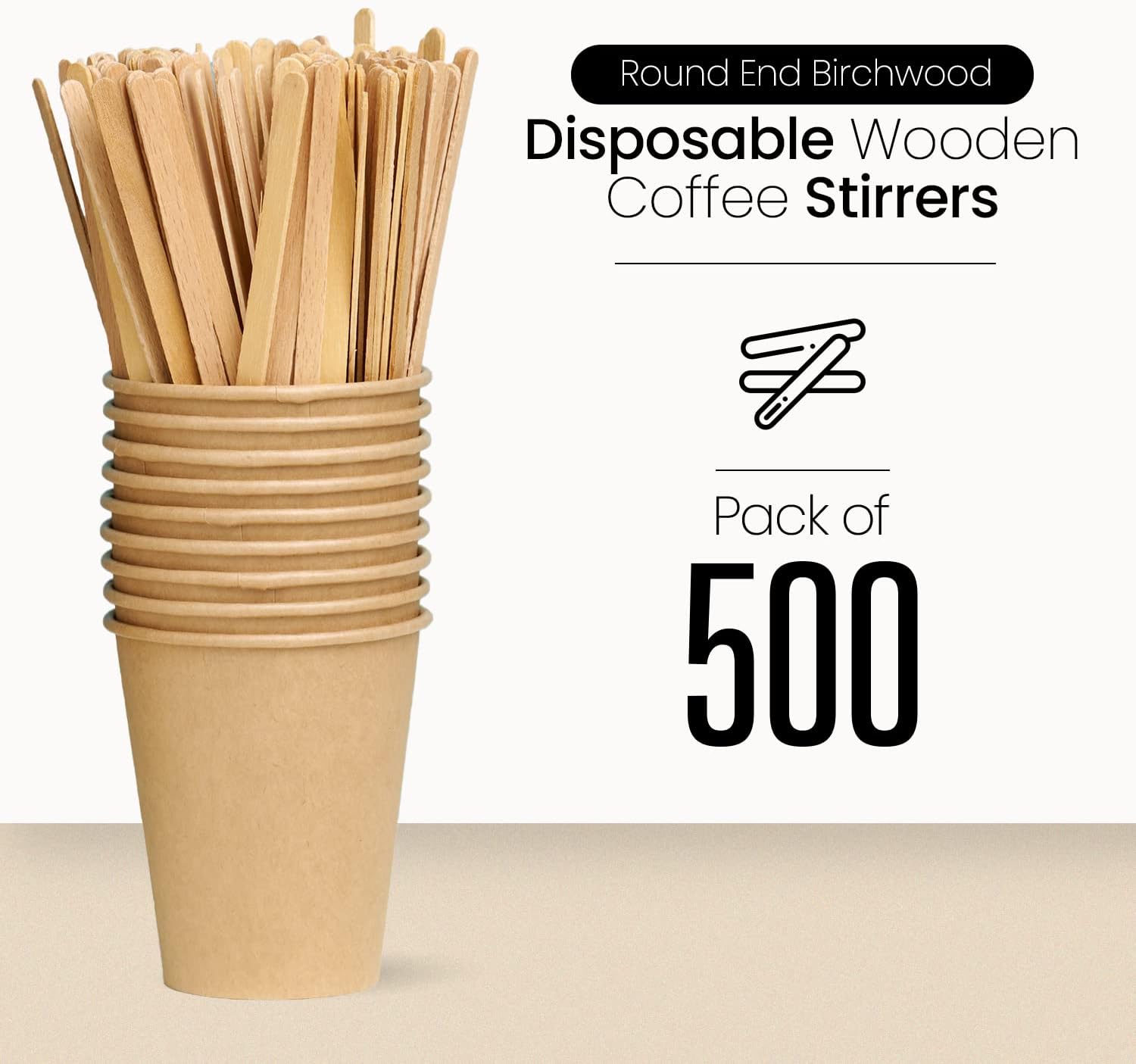 Coffee Stirrers Disposable Wooden Coffee Stir Sticks - Round-End Birchwood 5.5 Inches Large Wooden Stir Sticks - Pack of 500 Wood Stir Sticks, Coffee Sticks, Stirrers