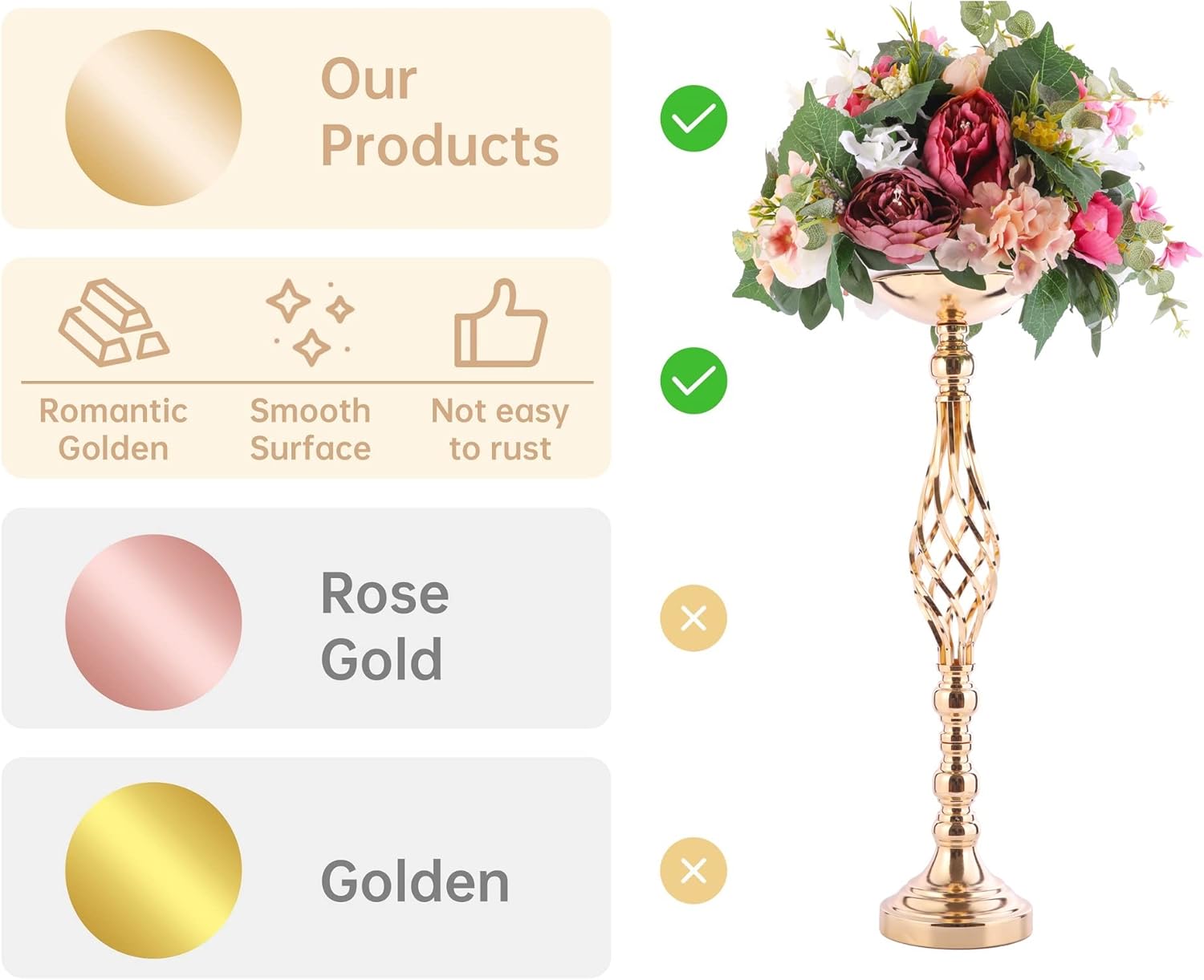 - PACKAGE INCLUDES: 2 pcs of gold wedding centerpieces. These centerpieces are 59cm/23.23" high. Their base is 14cm/5.51" wide, and the top opening diameter is 15cm/5.91".