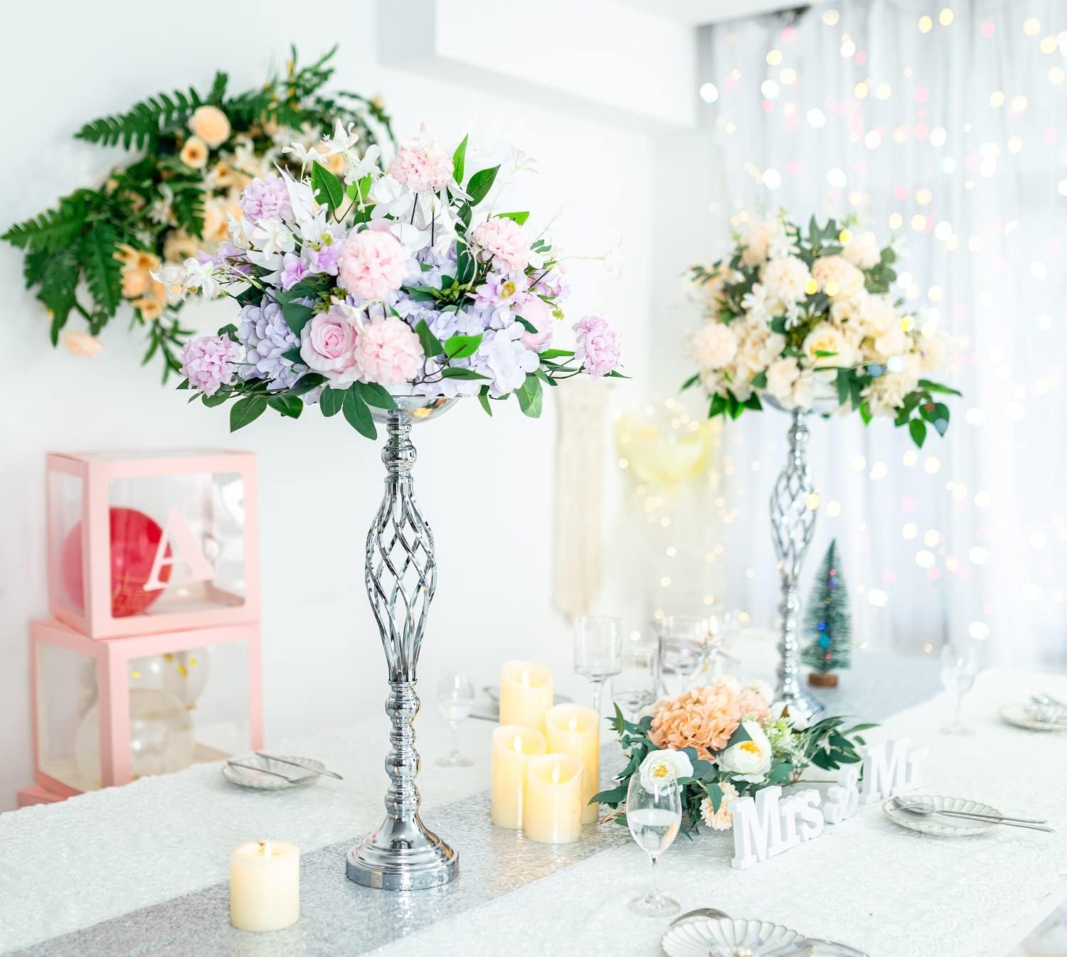 - WEDDING DECORATIONS: These wedding arrangement centerpieces are perfect for your wedding ceremony, wedding party and wedding road-leading. They match fresh flowers, artificial bouquets, flower balls and wedding candles, which can beautifully decorate your wedding moments.