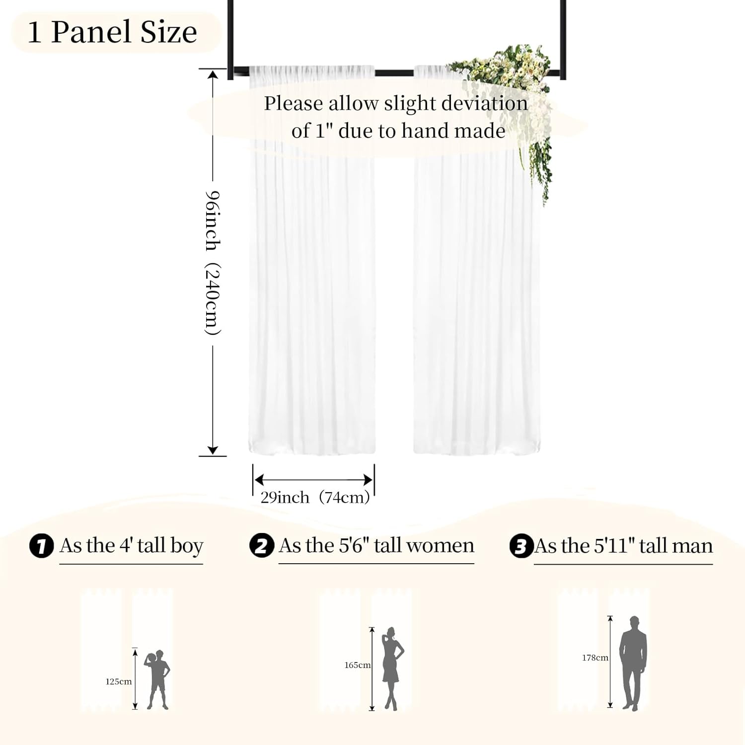 - ★ SHEER CHIFFON CURTAINS : Includes 2 Pieces Width 29'' by 96'' Long chiffon backdrop curtain, total area of 5ft wide by 8ft high (will come 2 pcs 29x96-Inch)