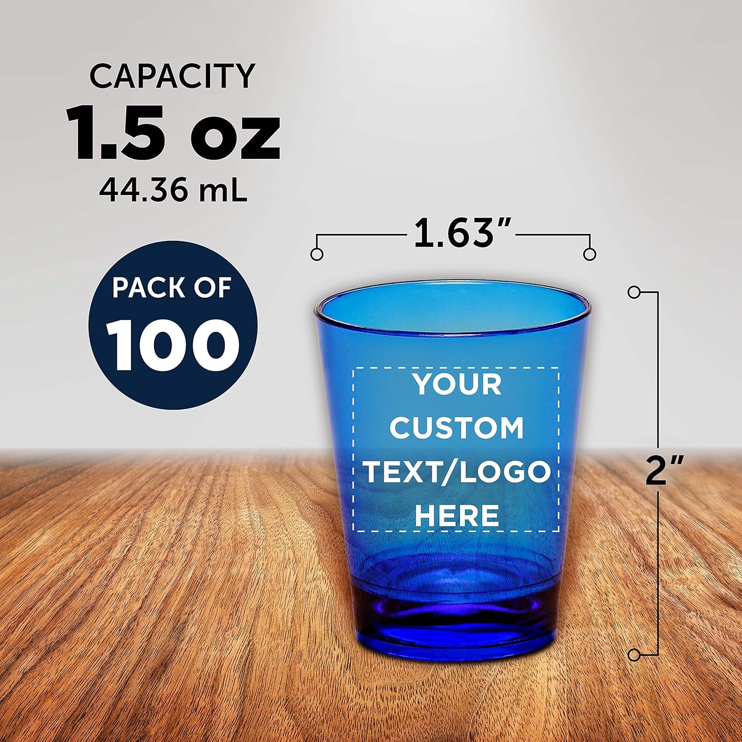 Custom Translucent Plastic Shot Glasses 1.5 oz. Set of 100, Personalized Bulk Pack - Acrylic, Great for Wedding, Party, Birthday, Gifts - Blue
