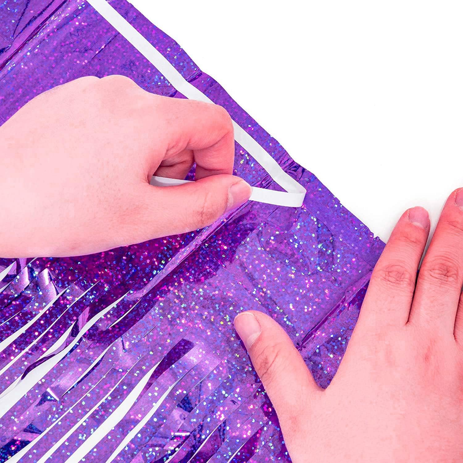 BRAVESHINE Purple Tinsel Foil Fringe Curtains - 2Pcs 3.2x8.2ft Metallic Holidays Photo Backdrop for Halloweens Birthdays Valentine's Bridal Shower Bachelorette Anniversary Engagement Party Supplies