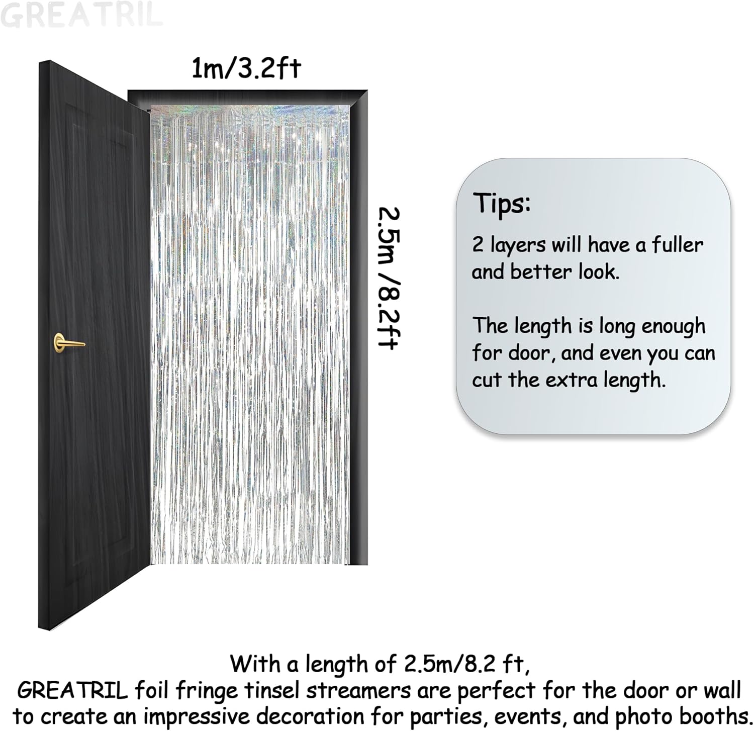 - Pack of 2, Greatril 3.2 ft x 8.2 ft Silver metallic tinsel Foil fringe curtain.