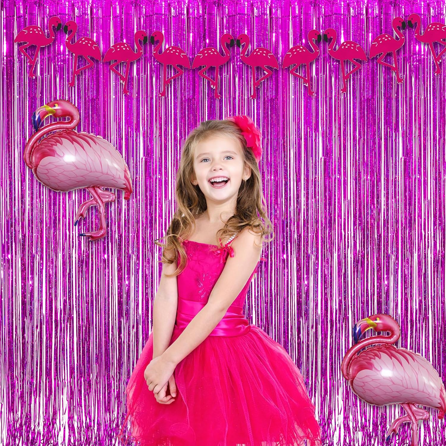 - This magenta foil fringe curtain is PET foil, it is thin and soft. This hot pink tinsel curtain can be kept for a long time and can be reused.The hot pink foil fringe curtain streamer has sequins on it, it will not fall off easily. The tinsel curtain is shiny, it can be used as a for party, you and your friends can take pictures together in front of the hot pink foil fringe curtains party decorations, which also make your party more passionate and atmosphere, you and your friends more enjoyable.