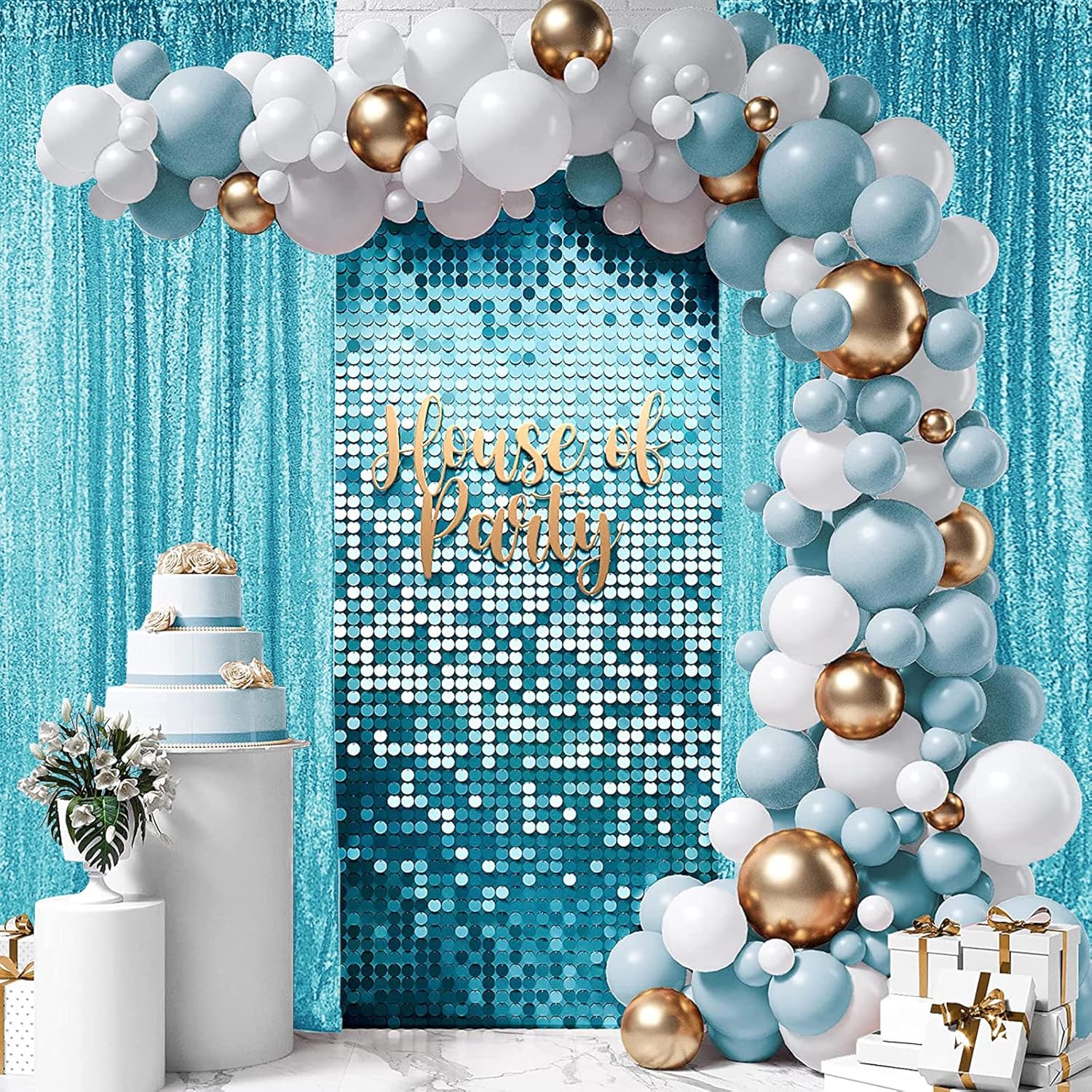 Hahuho Turquoise Sequin Backdrop Curtain, 4PCS 2FTx8FT Glitter Backdrop Curtain for Parties, Christmas, Wedding, Party Decoration(4 Panels, 2FT x 8FT, Turquoise