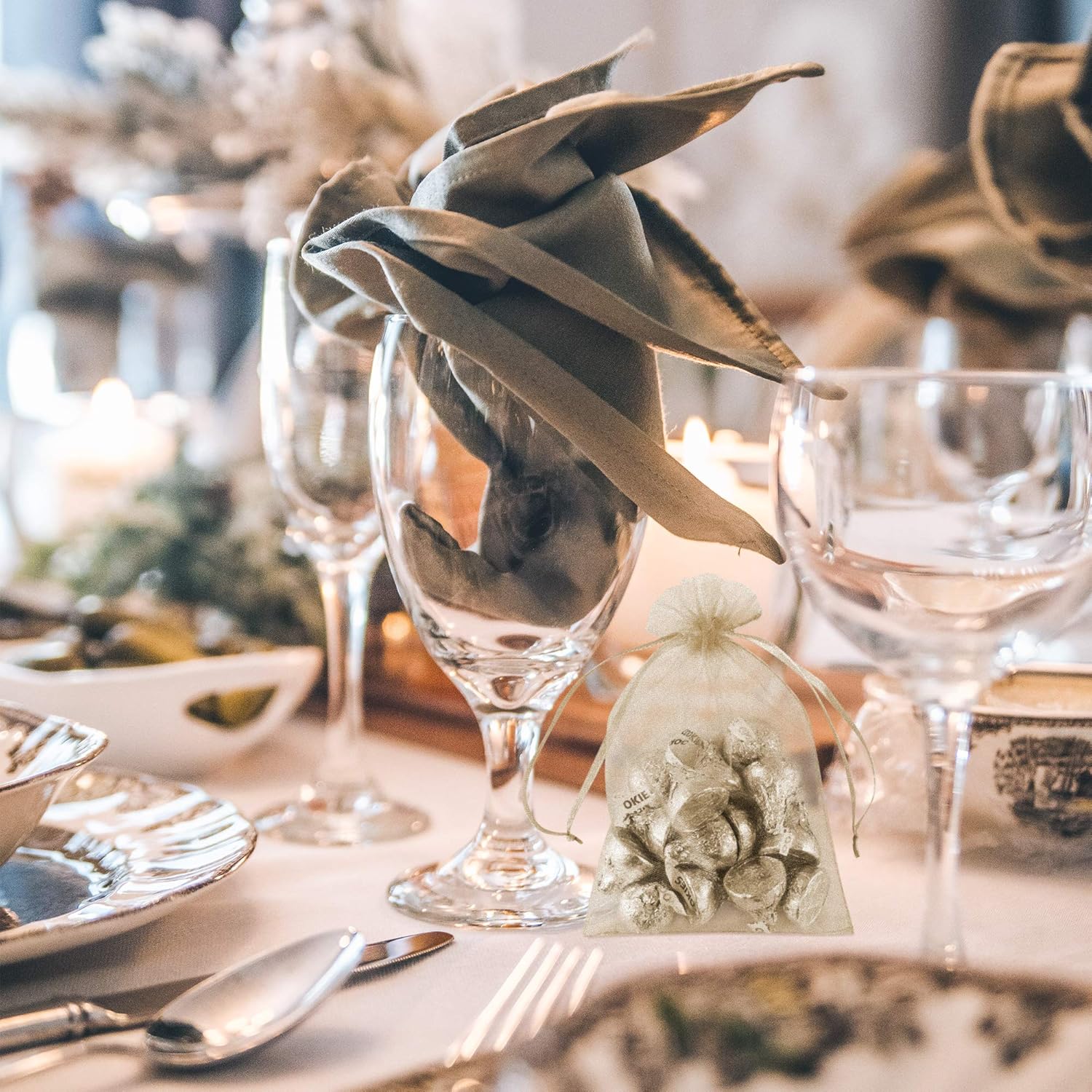 Super Z Outlet 100 Pack 5x7 Inch Mini Sheer Drawstring Organza Transparent Bags Jewelry Sack Pouches for Wedding, Party Decorations, Arts & Crafts Gifts (Ivory)