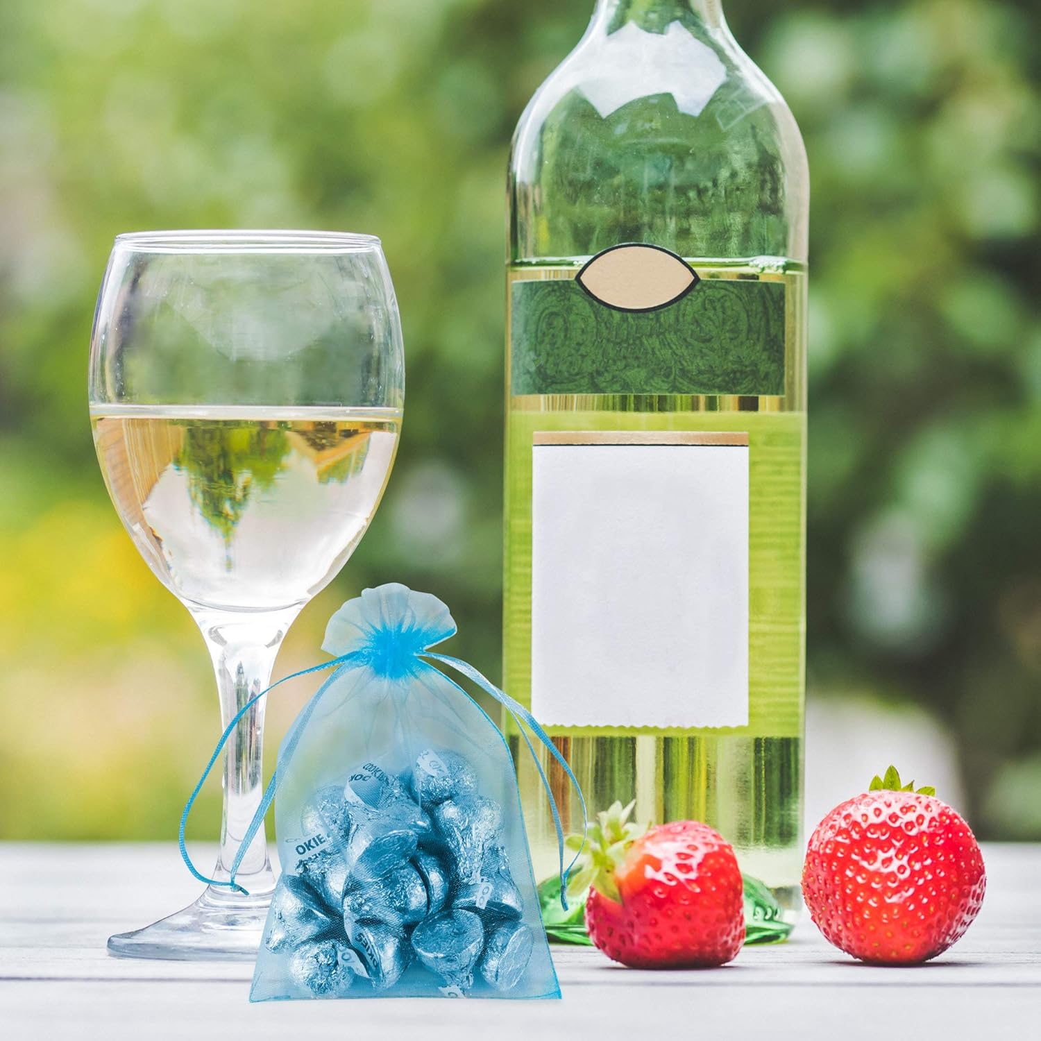Super Z Outlet 100 Pack 5x7 Inch Mini Sheer Drawstring Organza Transparent Bags Jewelry Sack Pouches for Wedding, Party Decorations, Arts & Crafts Gifts (Light Blue)
