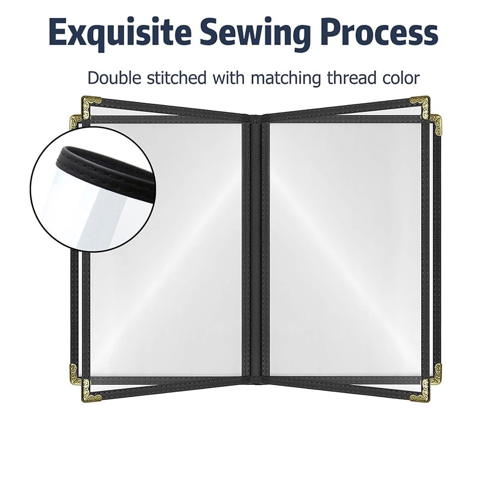 - ✅Durable and Crystal-Clear Protection: Made from crystal-clear vinyl, the menu holder ensures excellent visibility while protecting pages from spills, stains, and everyday wear. Double-stitched edges provide enhanced durability for long-term use in busy dining environments.