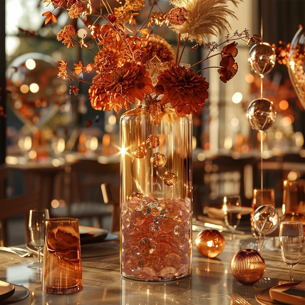 HappyFiller 720 PCS Champagne Acrylic Diamonds Gems for Fall Decoration Vase Fillers,Wedding Centerpieces,Party Table Scatters Decor,Home Accents,Arts Crafts,Treasure Jewels Gemstones