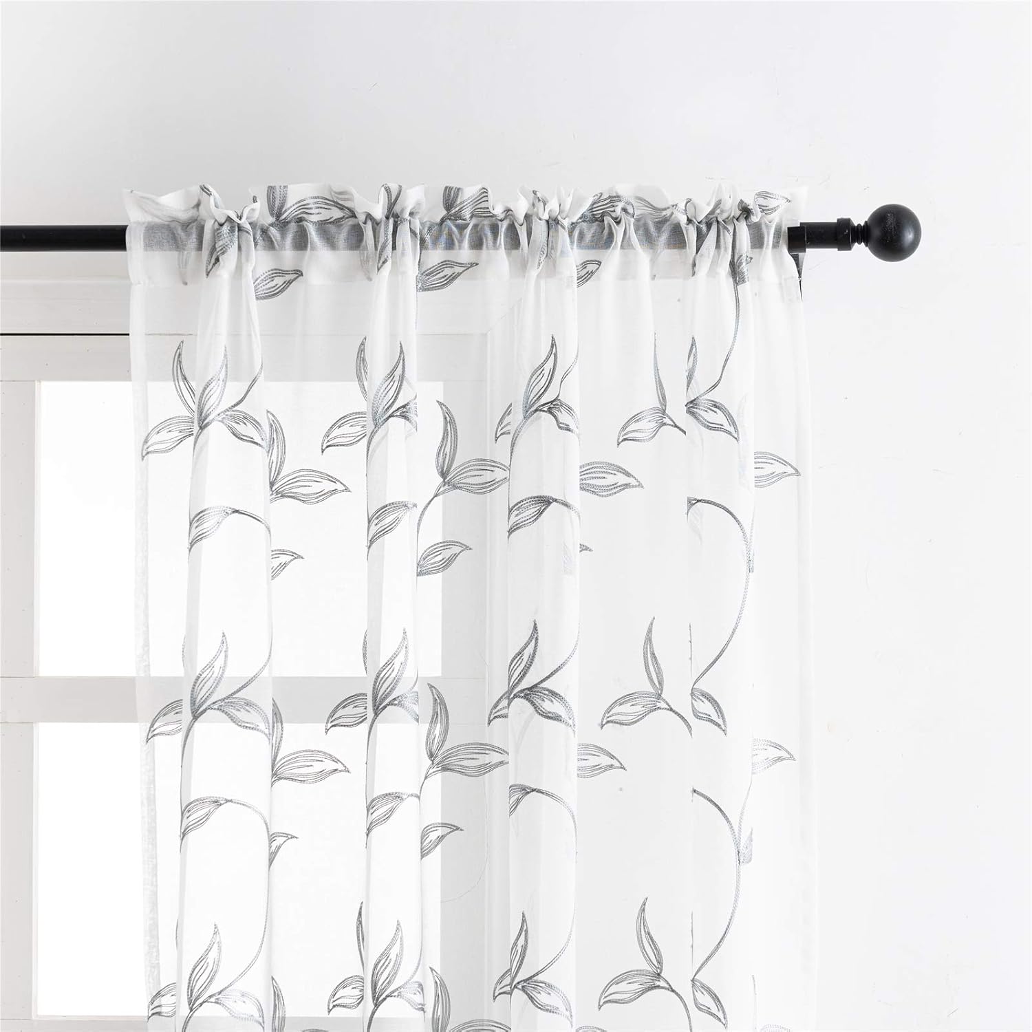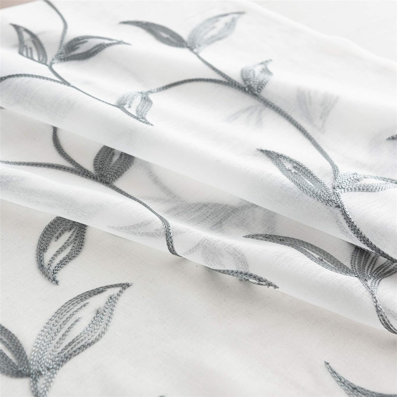 - Elegant embroidered design: window sheer curtains design grey vine leaves embroidered pattern, add style and elegance to living space, perfect for Bedroom, living room, kids room or any window.