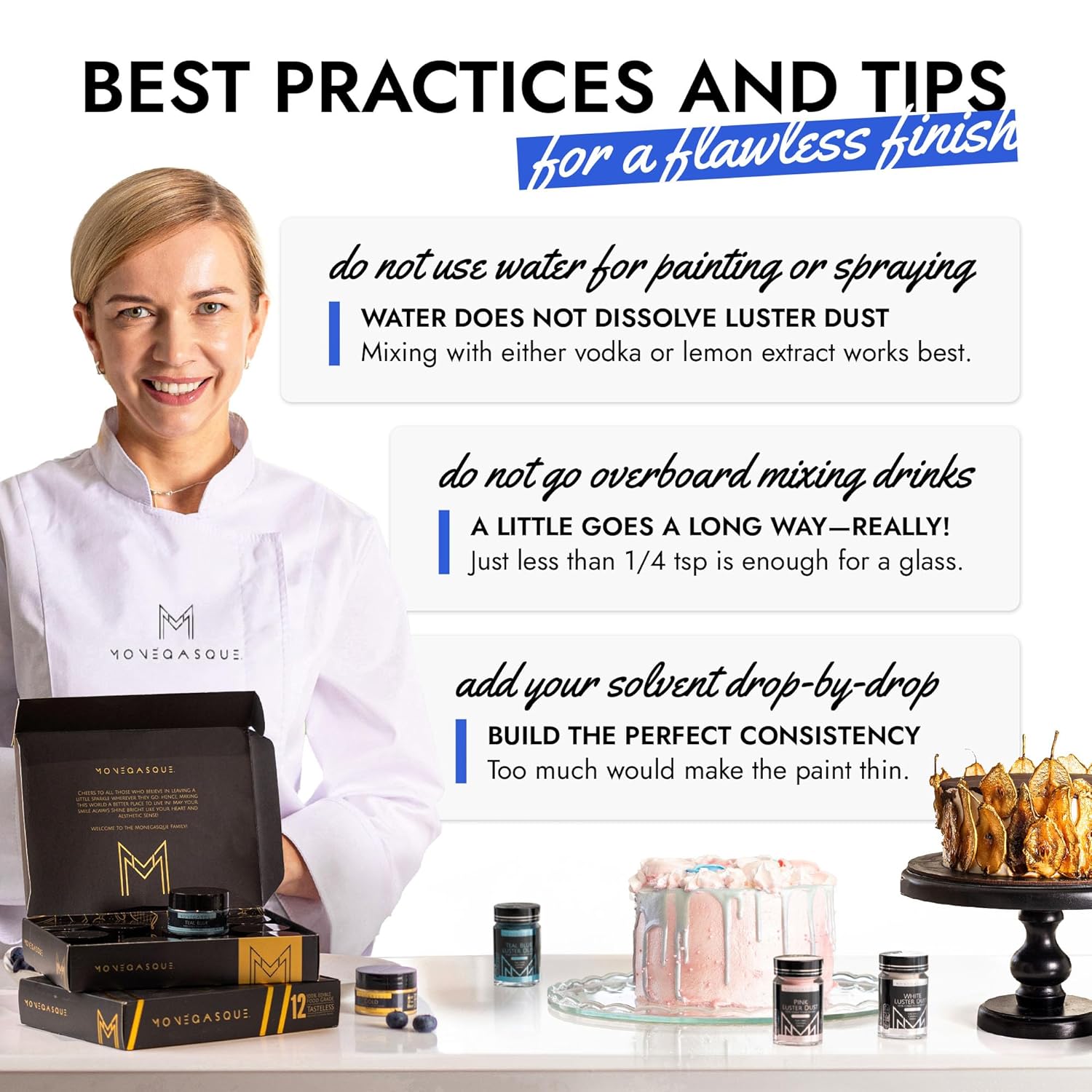 - MULTIPLE COLORS AVAILABLE: Available in 12 vibrant colors, including gold, pink, silver, and more. Our edible luster dust is perfect for themed parties, holidays, halloween, and special occasions. Mix and match to create stunning, eye-catching decorations for any event.