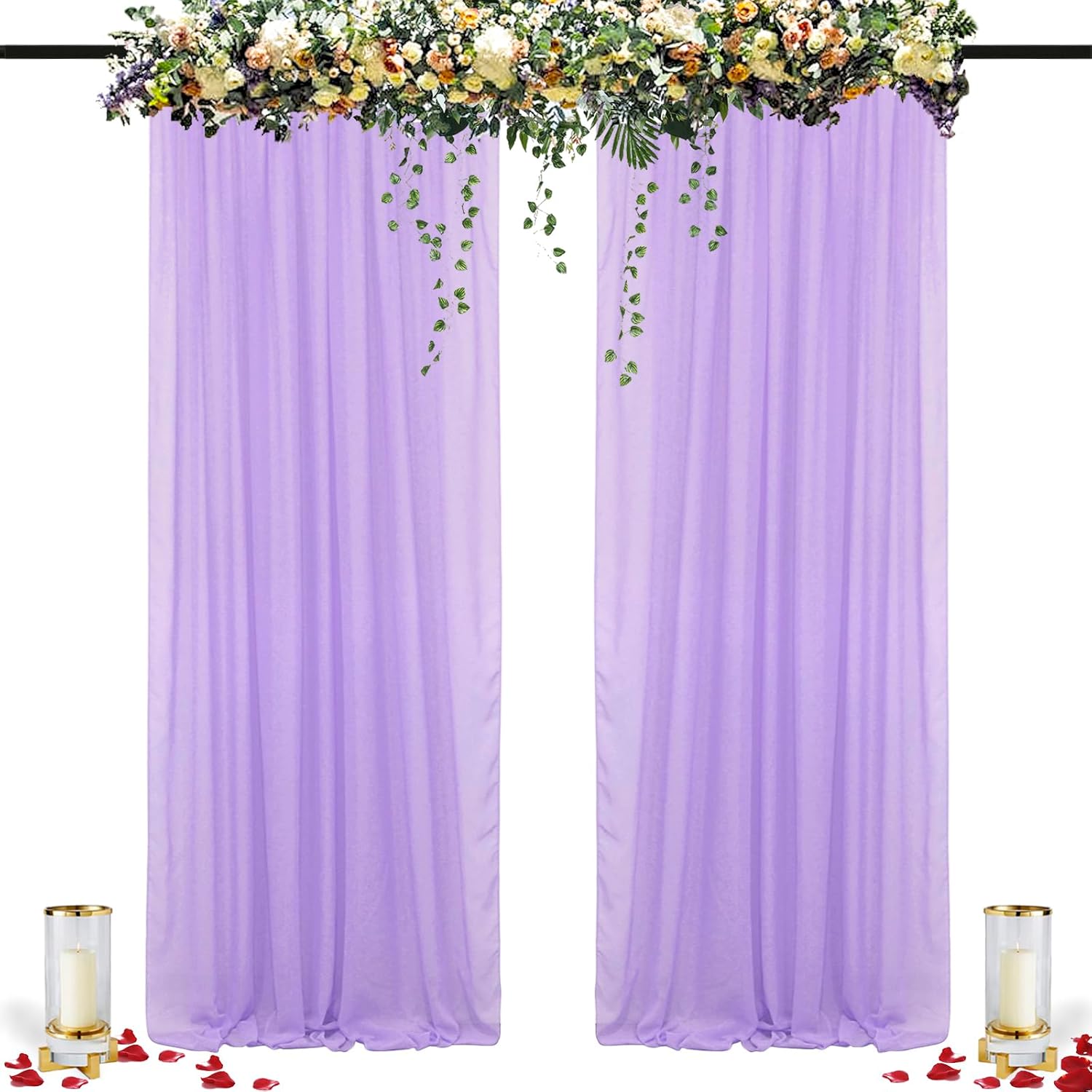 - ★ SHEER CHIFFON CURTAINS :Includes 2 Panels Width 29'' by 120'' Long chiffon backdrop curtain Lavender Sheer Curtains Wedding Chiffon Backdrop.