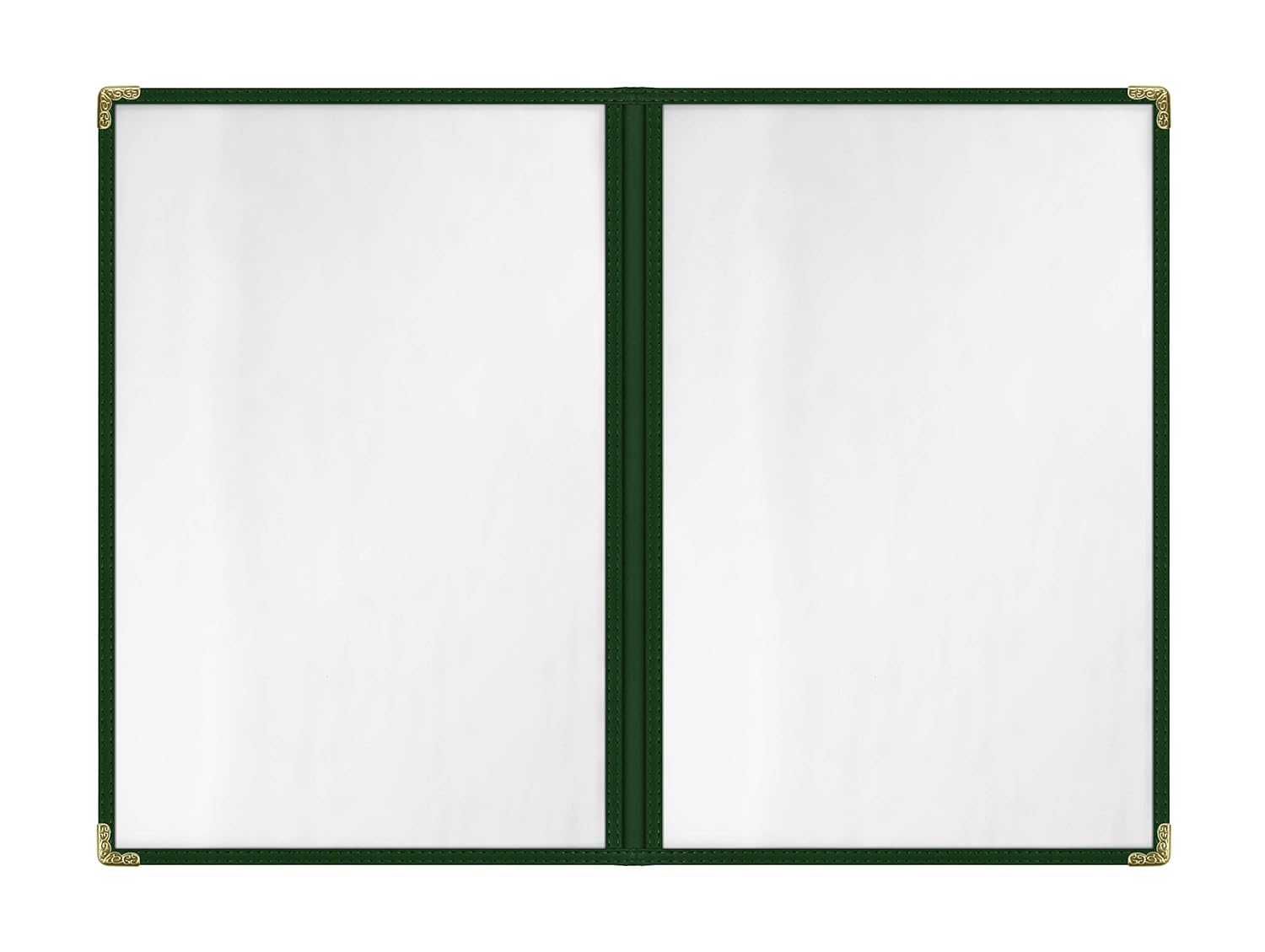 Goodsmart Restaurant Menu Covers – Green 25 Pack, 4-View 8.5" x 14", Side-Loading Vinyl & Plastic Menu Holders, Clear Menu Sleeves, Leather-Style Café Covers with Gold Corners